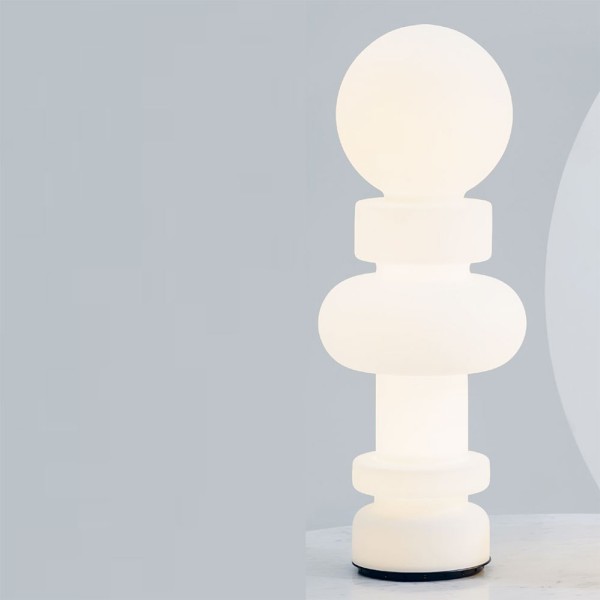 Die 89 cm hohe künstlerische Glasleuchte Re ist ein Design von Bobo Piccoli aus dem Jahr 1968, zusätzlich ist das kleinere Modell Regina als Tischleuchte bei Fontana Arte im Sortiment. Der Designer Bobo Piccoli wurde 1927 in Mailand in einem bürgerlichen Haushalt geboren, wo viele Künstler wie Mario Sironi, Carlo Carrà, Giuseppe Ungaretti oder Salvatore Quasimodo verkehrten. Der Feingeist Piccoli studierte die griechische Kunst, sowie Bildhauerei und Architektur, Ikonographie und Mosaiken, er liebte Giotto und die Renaissance, Caravaggio und Savinio. Bekannt wurde er primär als Maler, gleichzeitig arbeitete er aber auch an Architekturprojekten zusammen mit Marco Zanuso oder Roberto Menghi. 1968 beschäftigte sich der Künstlern zusammen mit Fontana Arte über die Beziehung von Kunst und Serienprodukten, das Ergebnis waren die Leuchten Regina und Re.