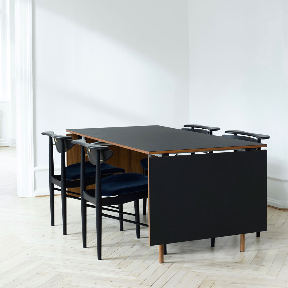 Einer unserer Lieblingsstühle ist der Reading Chair von Finn Juhl. Denn damit schuf der Designer 1953 einen eigenen Typenstuhl. Der Reading Chair ist so konzipiert, dass er zwei Sitzpositionen erlaubt - man kann auf ihm wie auf jedem Stuhl sitzen oder nach hinten gerichtet, um so ein Buch zu genießen. Das hört sich vielleicht seltsam an, aber das Ergebnis ist ein einfacher, unprätentiöser und dennoch gut durchdachter und optisch ansprechender Stuhl. Der Reading Chair ist bei House of Finn Juhl aktuell in vier Ausführungen erhältlich: Eiche, Eiche schwarz, Nussbaum und Eiche in Kombination mit Nussbaum. Zusätzlich ist der Lesestuhl auch in einer gepolsterten Version erhältlich.