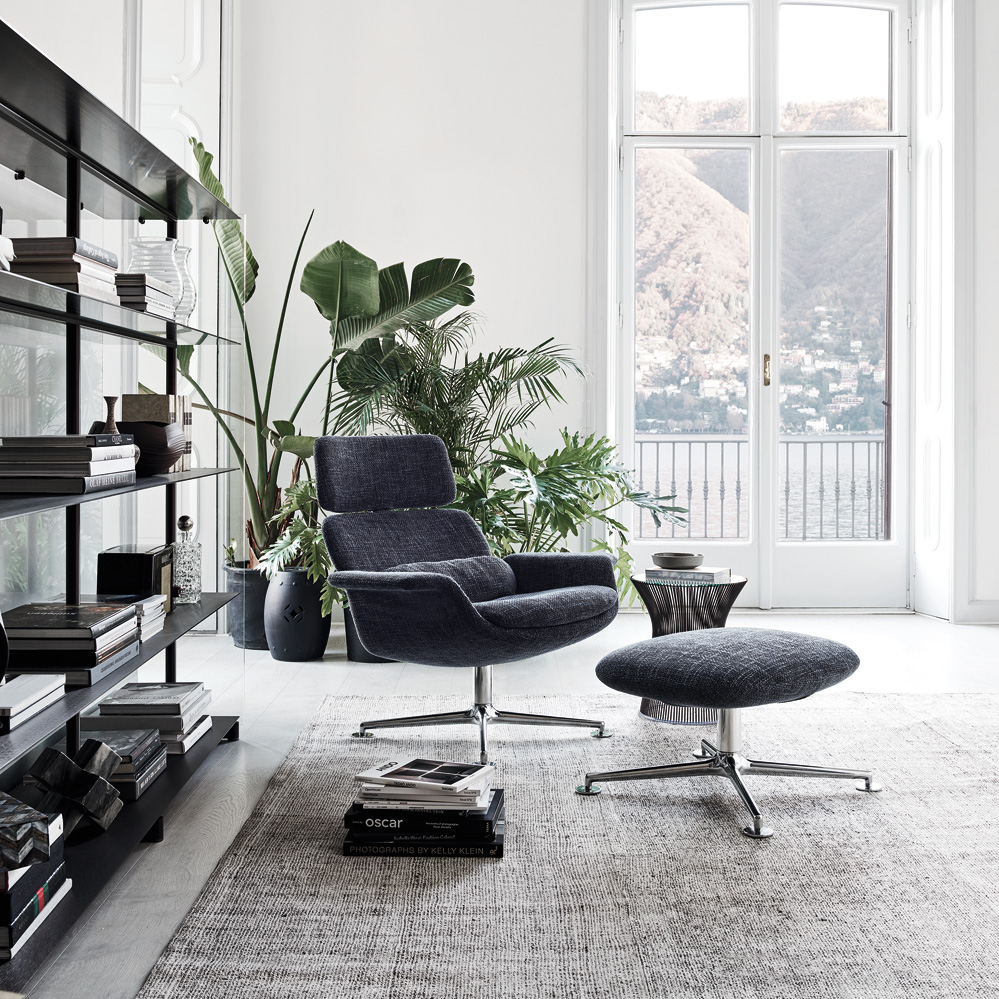 Ab 2015 entwarf der italienische Stardesigner Piero Lissoni für Knoll die erfolgreiche Möbelsserie Grasshopper (gerne auf Anfrage). 2019 ergänzte er die Serie durch das modulare Red Baron Bücherregal, das in vier verschiedenen Varianten erhältlich ist: