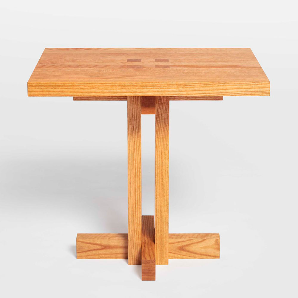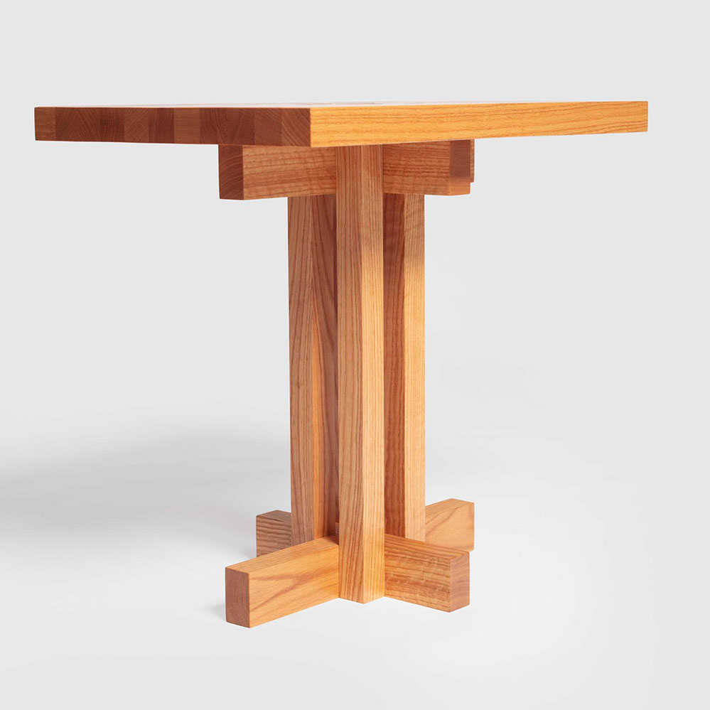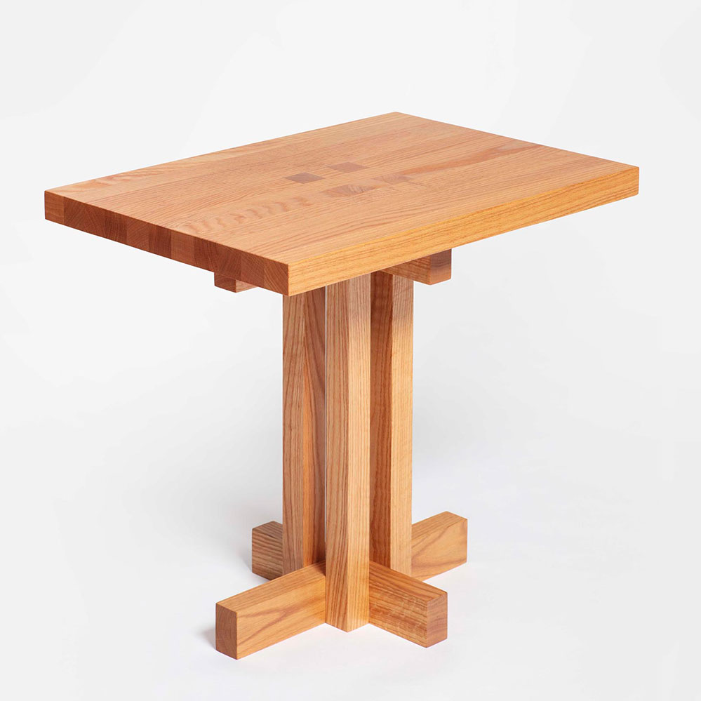 Der skulpturale Beistelltisch RK12 ist ein Entwurf des kalifornischen Architekten Ray Kappe aus den 1960er Jahren und entstand wohl für seine eigenes Haus in Los Angeles. Hergestellt in Deutschland aus massiver Roteiche, verkörpert das Design das Lebensgefühl des Mid Century Designs an der amerikanischen Westküste, gleichzeitig erinnert die Formensprache an Arbeiten von Frank Lloyd Wright oder Rudolph Schindler.