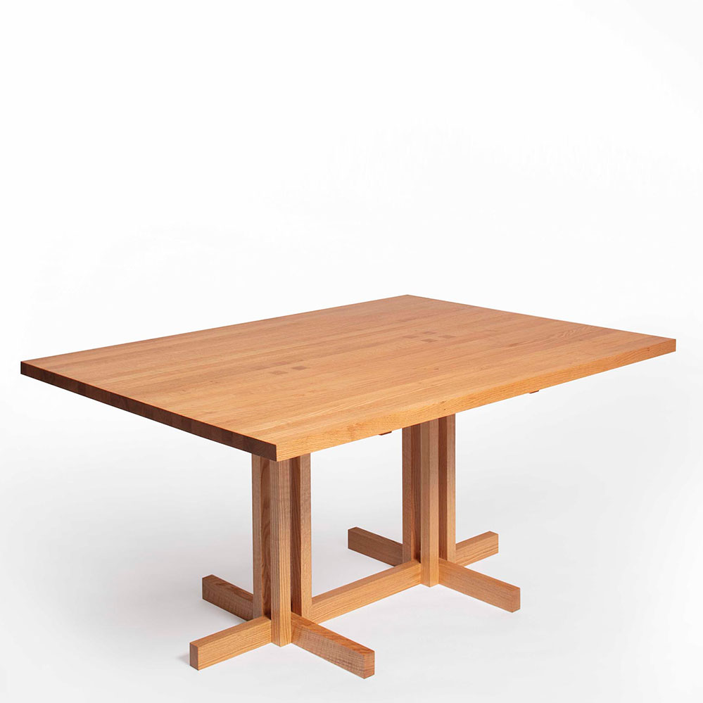 Der Massivholztisch RK9 ist ein Entwurf des kalifornischen Architekten Ray Kappe aus den 1960er Jahren. Hergestellt in Deutschland aus massiver Roteiche, verkörpert das Design das Lebensgefühl des Mid Century Designs an der amerikanischen Westküste, gleichzeitig erinnert die Formensprache an Arbeiten von Frank Lloyd Wright oder Rudolph Schindler. Weitere Größen sind auf Anfrage möglich.