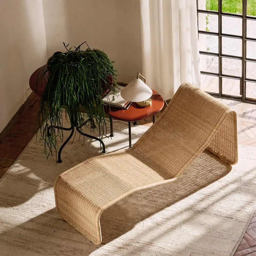Einer der bekanntesten Möbelentwürfe von Tito Agnoli ist die Ruheliege P.3S aus den 1960er Jahren. Gedacht als Solitärmöbel, verbirgt sich hinter dem Entwurf ursprünglich ein ganzes modulares System. Gefertigt wird die Ruheliege immer noch aufwendig in Handarbeit von Bonacina 1889 in Italien, aber seit 2026 exklusiv für Gubi. Die Fertigstellung jeder P3S Liege dauert mehrere Tage, wobei der Großteil dieser Zeit darauf verwendet wird, die durchgehende Oberfläche zu weben. In jeder P3S Chaise Longue werden rund 400 Meter gespaltenes Rattan eingewebt. Heute ist die Ruheliege wahlweise für Indoor oder als Outdoor-Version in einem Kunststoffrattan erhältlich.