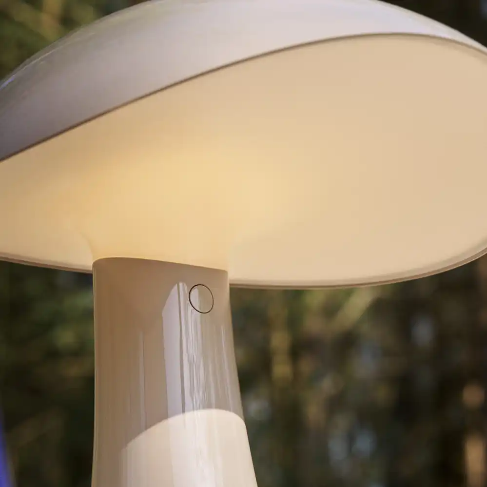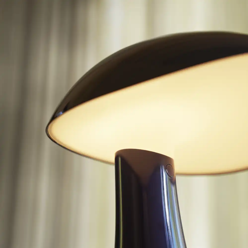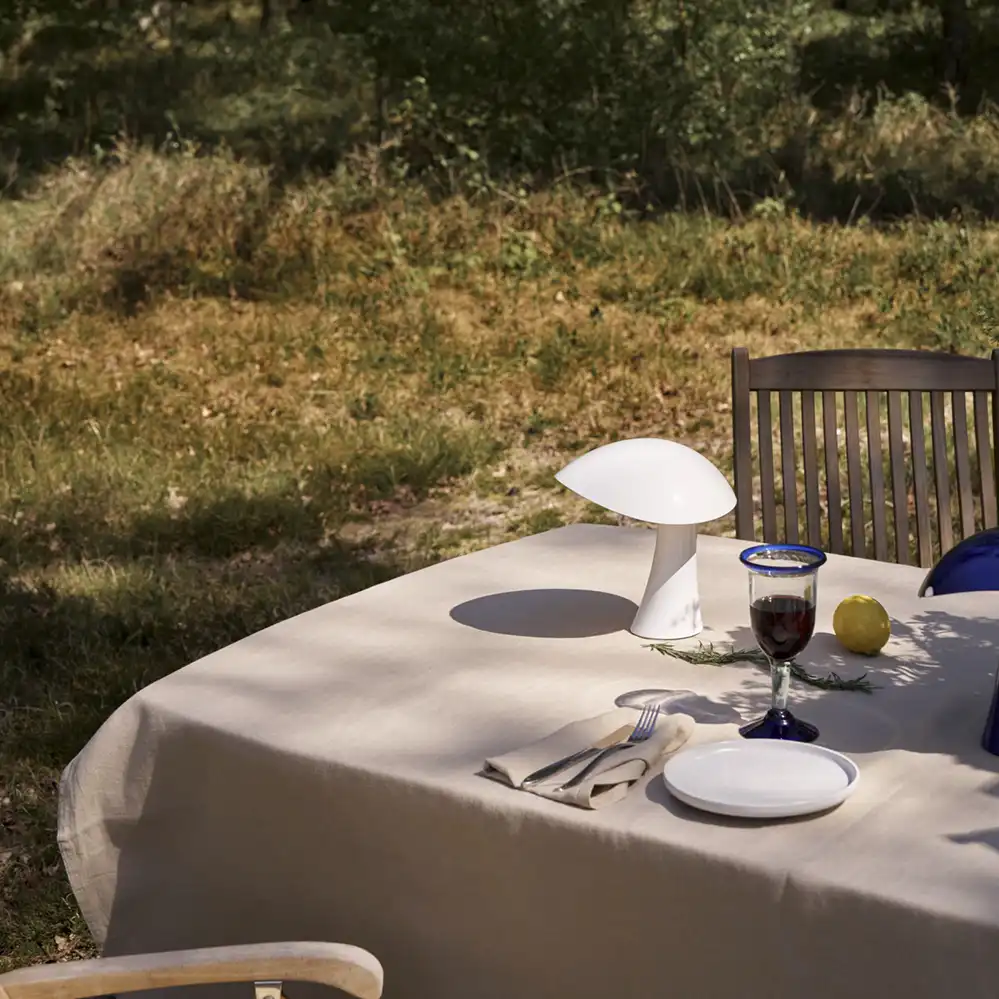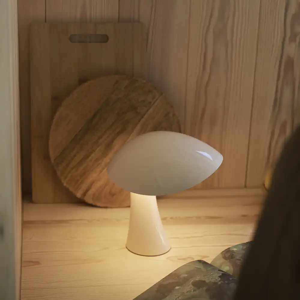 Die Rumee Tischleuchte wurde von Gabriel Tan entworfen und vereint funktionale Beleuchtung mit skulpturalem Design. Inspiriert von den fließenden Formen eines breitkrempigen Huts, erinnert das Design an organische Elemente aus der Natur. Die tragbare Bauweise und die angenehme Haptik machen Rumee besonders benutzerfreundlich – perfekt für den mobilen Einsatz in verschiedenen Räumen. Ihr leicht geneigter Lampenkopf erweitert den Lichtkegel und sorgt für gezielte Ausleuchtung nach unten und vorne – ideal für Nahbereichsbeleuchtung am Arbeitsplatz oder Lesetisch und Dank integriertem Diffusor bietet Rumee ein blendfreies, dimmbares Licht, das sich flexibel an unterschiedliche Lichtbedürfnisse anpassen lässt. Gleichzeitig erzeugt sie eine sanfte 360°-Ambientebeleuchtung, die eine angenehme Atmosphäre schafft.