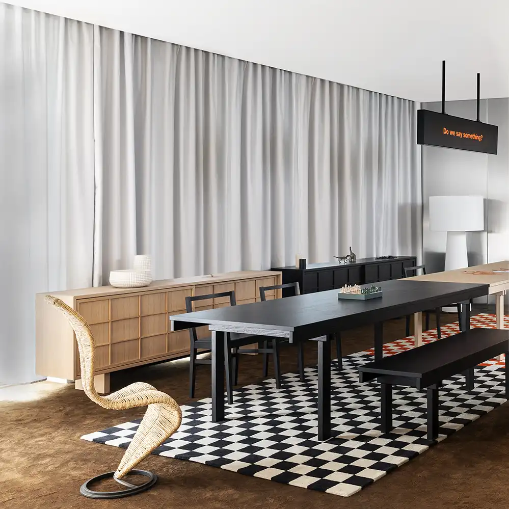 - Auf Anfrage ist der S-Chair bei Cappelli in Stoff oder Leder lieferbar