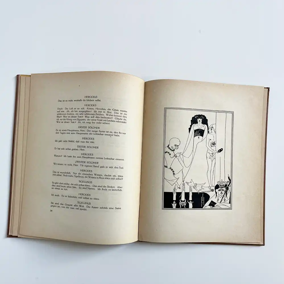 1893 erschien das Buch Salome von Osacr Wilde mit den Jugendstil-Illustrationen von Aubrey Beardsley. Wegen der expliziten Darstellung und den Aktzeichnungen von Aubrey Beardsley wurde das Buch damals ein Skandal.