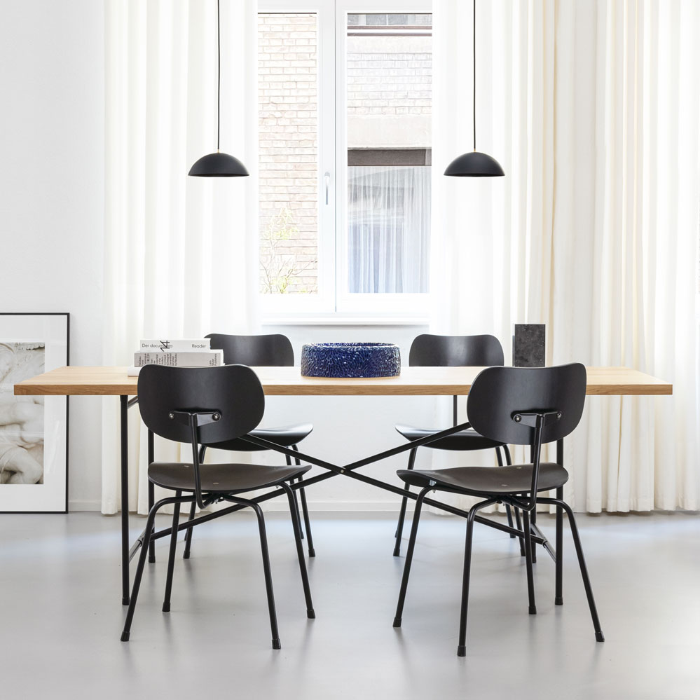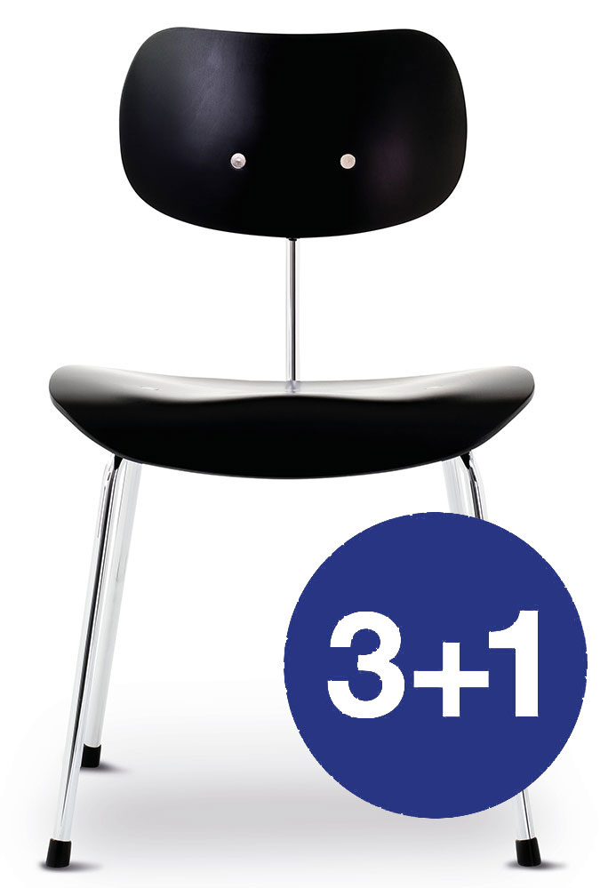 Bis zum 21. Dezember 2025 erhalten Sie beim Kauf von vier SE68 Stühlen den vierten Stuhl ohne Berechnung, was rund 25% Rabatt entspricht, wir freuen uns auf Ihre Bestellung, Das Angebot gilt für die Varianten mit der Schale in Eiche natur oder schwarz gebeizt.