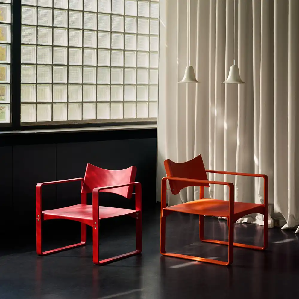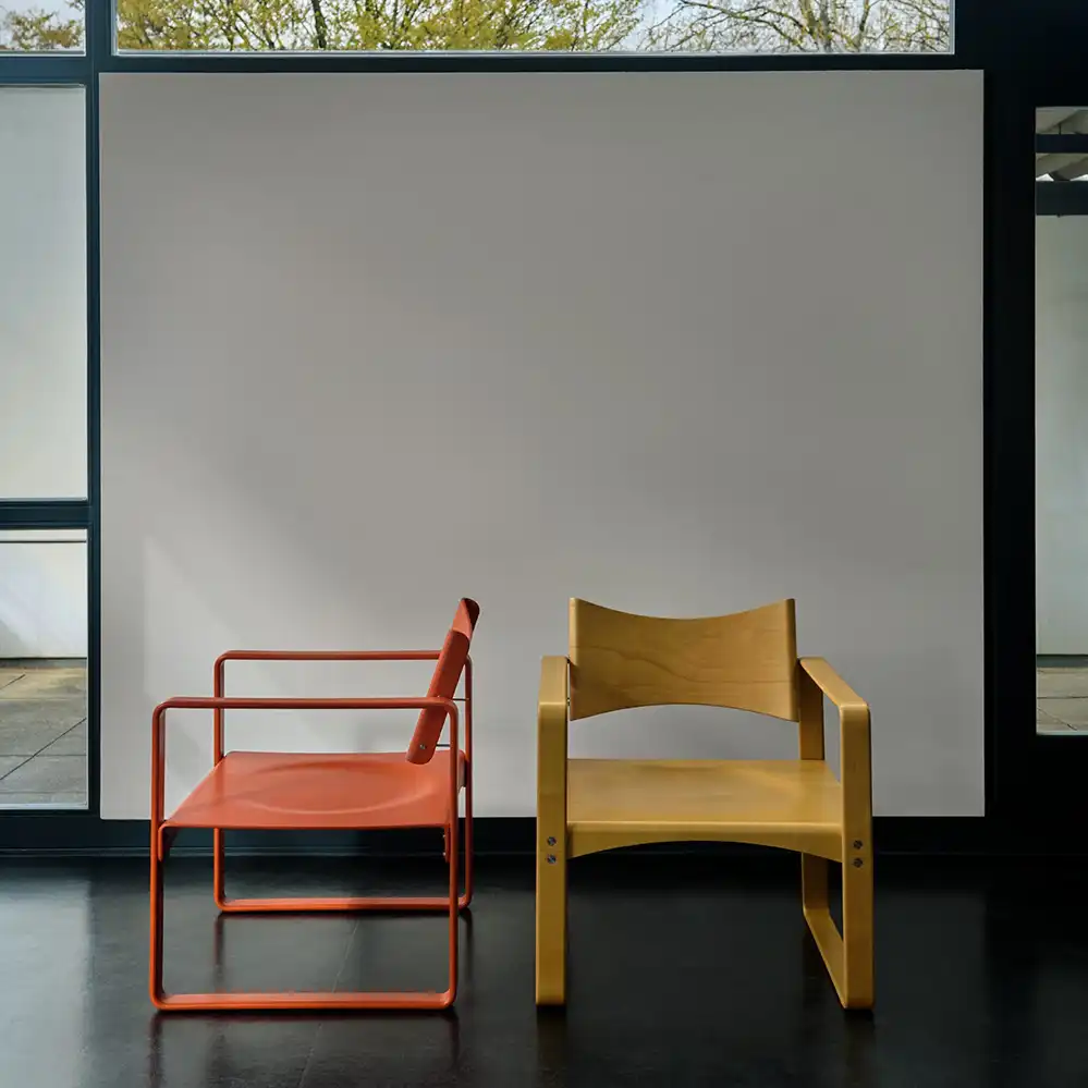 Ursprünglich für Thonet entwarf Verner Panton um 1965/66 den Sessel aus Schichtholz, 2025 erfolgte die Neuauflage von Verpan in enger Zusammenarbeit mit der Verner Panton Design AG. Der Sessel Serie 270F besteht aus gebogenem und lackiertem FSC-zertifiziertem Birkensperrholz und verkörpert visuelle Leichtigkeit und formale Klarheit. Sein unverwechselbares Gestell – erhältlich in einer Reihe auffälliger Farben wie Blau, Rot, Orange, Schwarz und Honig – kann optional mit Kissen aus Kvadrat Hallingdal-Textil oder Sørensens-Leder kombiniert werden. Das Ergebnis ist ein durch und durch moderner Klassiker der heute genauso fantasievoll und zukunftsweisend wirkt wie vor sechs Jahrzehnten.