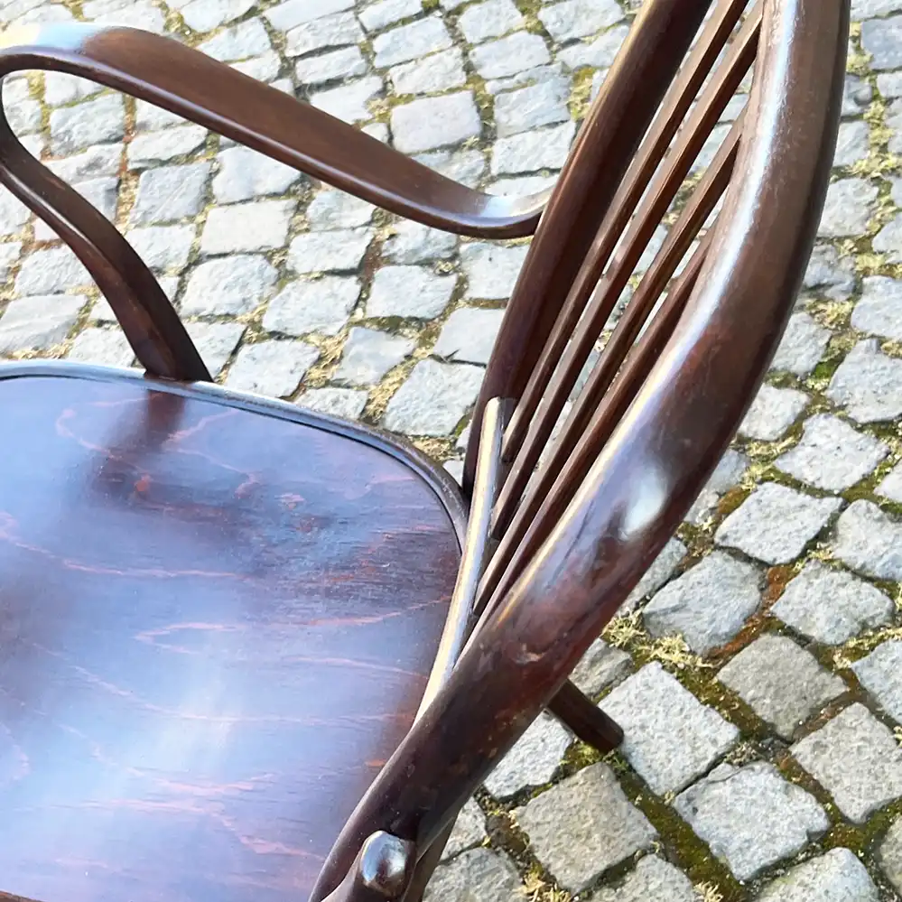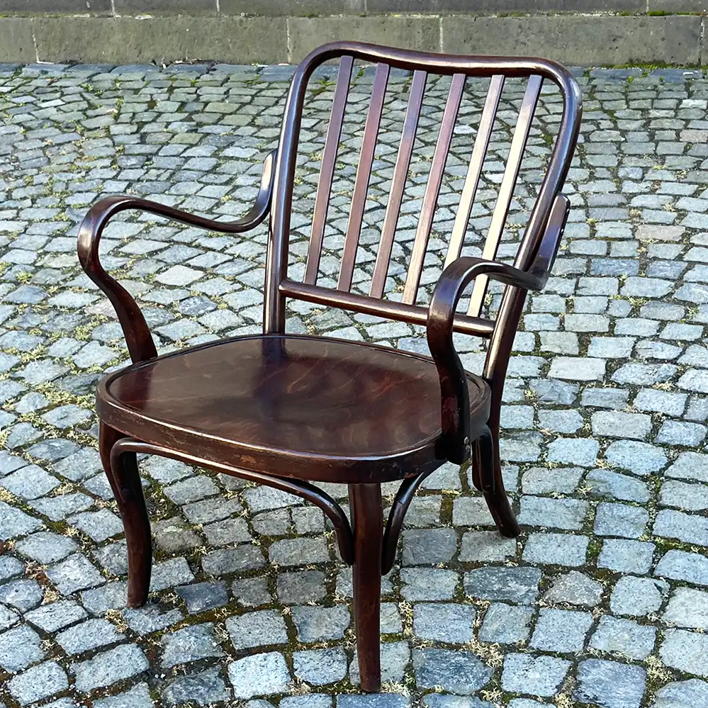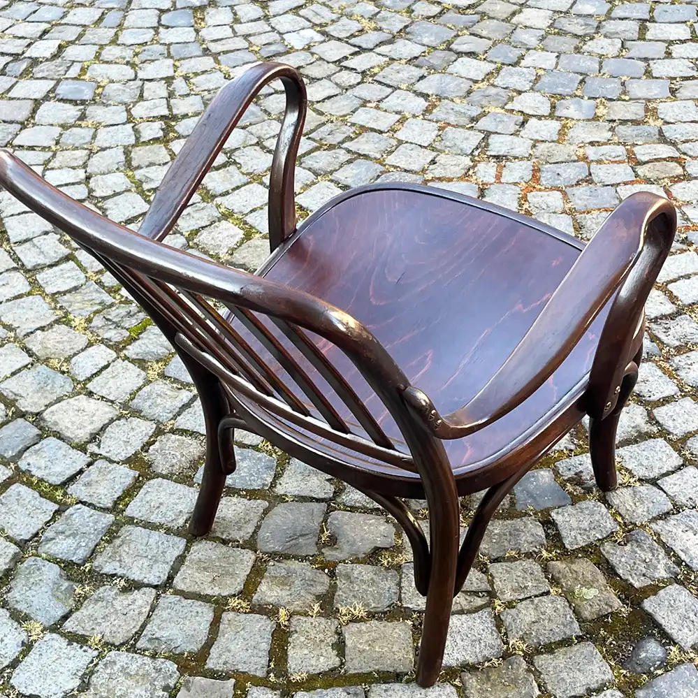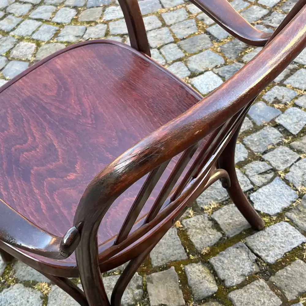 In den 1930er Jahren entwarf Josef Frank den Bugholzsessel 672 für Thonet. Unsere zwei Exemplare stammen von der kommunistischen Tageszeitung „Lidová Demokracie” in Prag und wurden von TON in den 1950er Jahren hergestellt. Die Firma TON entstand wohl nach dem Zweiten Weltkrieg und nutzte das ursprüngliche Thonet Werk in Bystřice pod Hostýnem. Zwei Stühle verfügbar, Preis pro Exemplar.