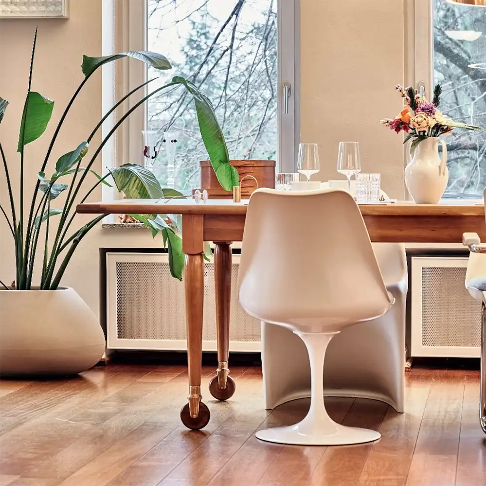 Das Original des Shaker Tisches von Habit basiert auf einem Entwurf Mitte des 19. Jahrhunderts und wurde als Prototyp wahrscheinlich von der Shaker-Gemeinde in New Lebanon, New York, entworfen. Um die großen Möbel möglichst stabil und mobil zu halten, wurde der Shaker Tisch schon damals mit Rollen versehen. Erhältlich ist der Shaker Tisch von Habit in drei Längen: 220 cm, 250 cm und 300 cm.