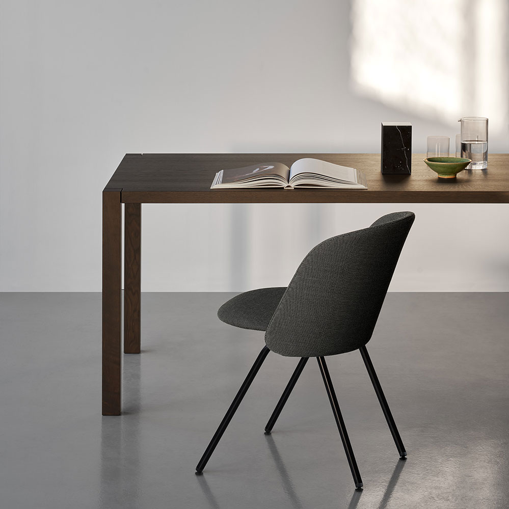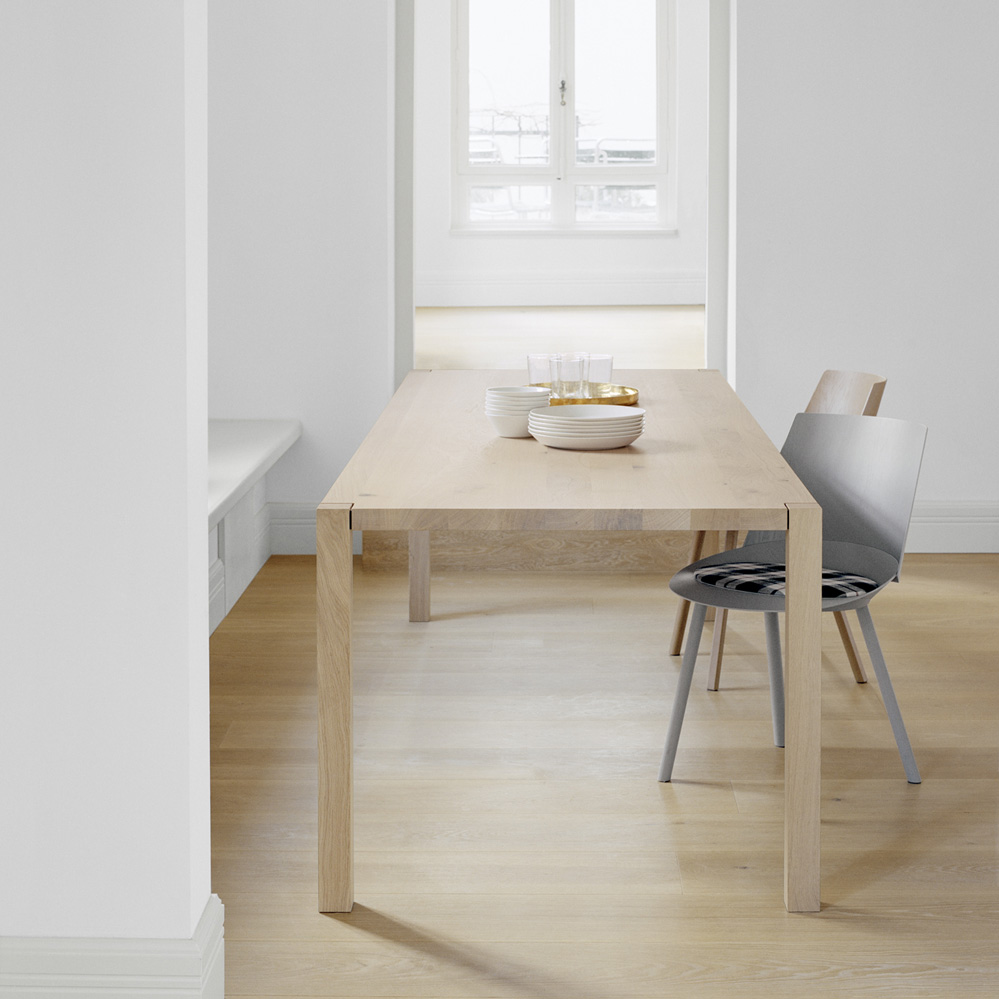 Der Sloane Esstisch von Philipp Mainzer ist ein eleganter und reduzierter Esstisch aus Massivholz. Charakteristisch für klassische e15-Massivholztische: die quadratischen Beine des Tisches stoßen durch die filigrane 40 mm dicke Tischplatte, die die Unterkonstruktion des Tisches beinhaltet. Erhältlich ab einer Länge von 140 cm ist Sloane ein Esstisch, der sich besonders für kleinere Räume eignet. Der Tisch ist in fünf Teile zerlegbar, das lichte Maß unterhalb der Tischplatte beträgt 71 cm.