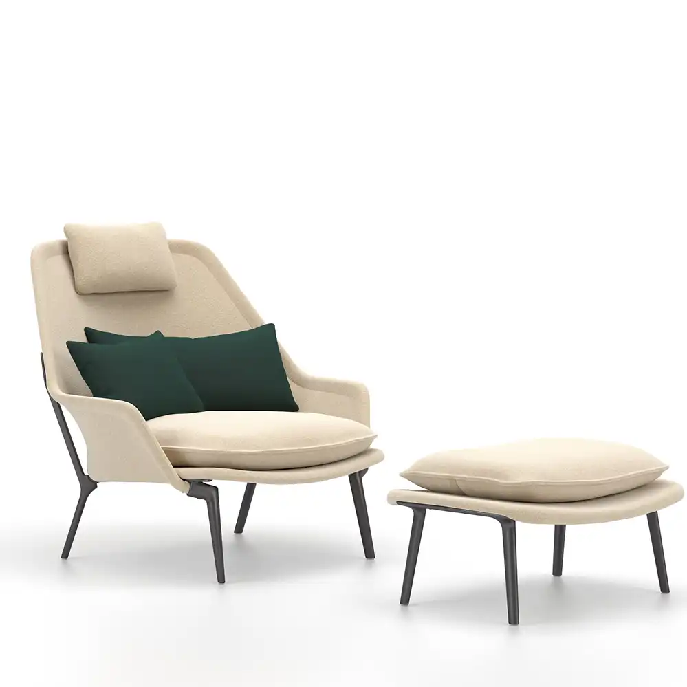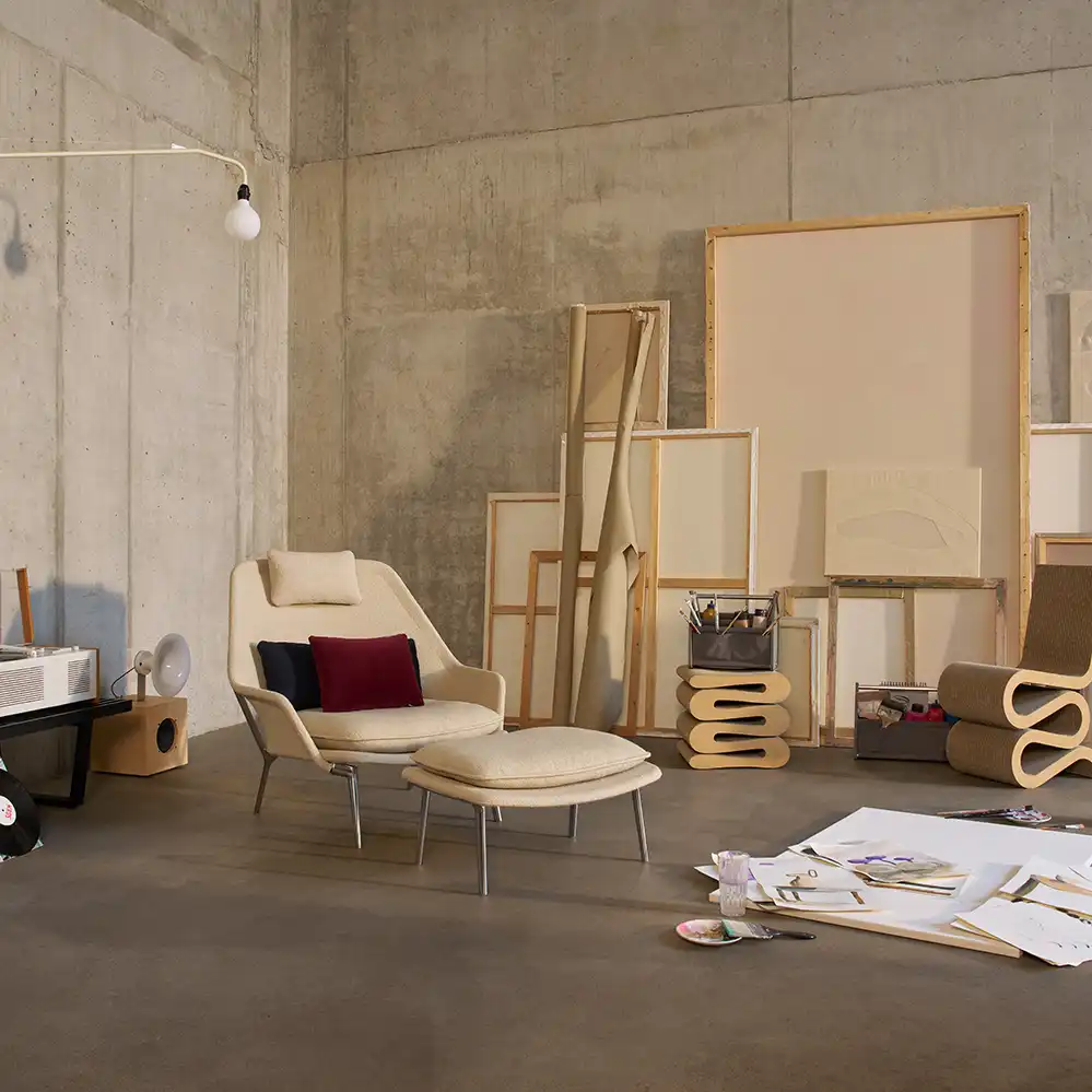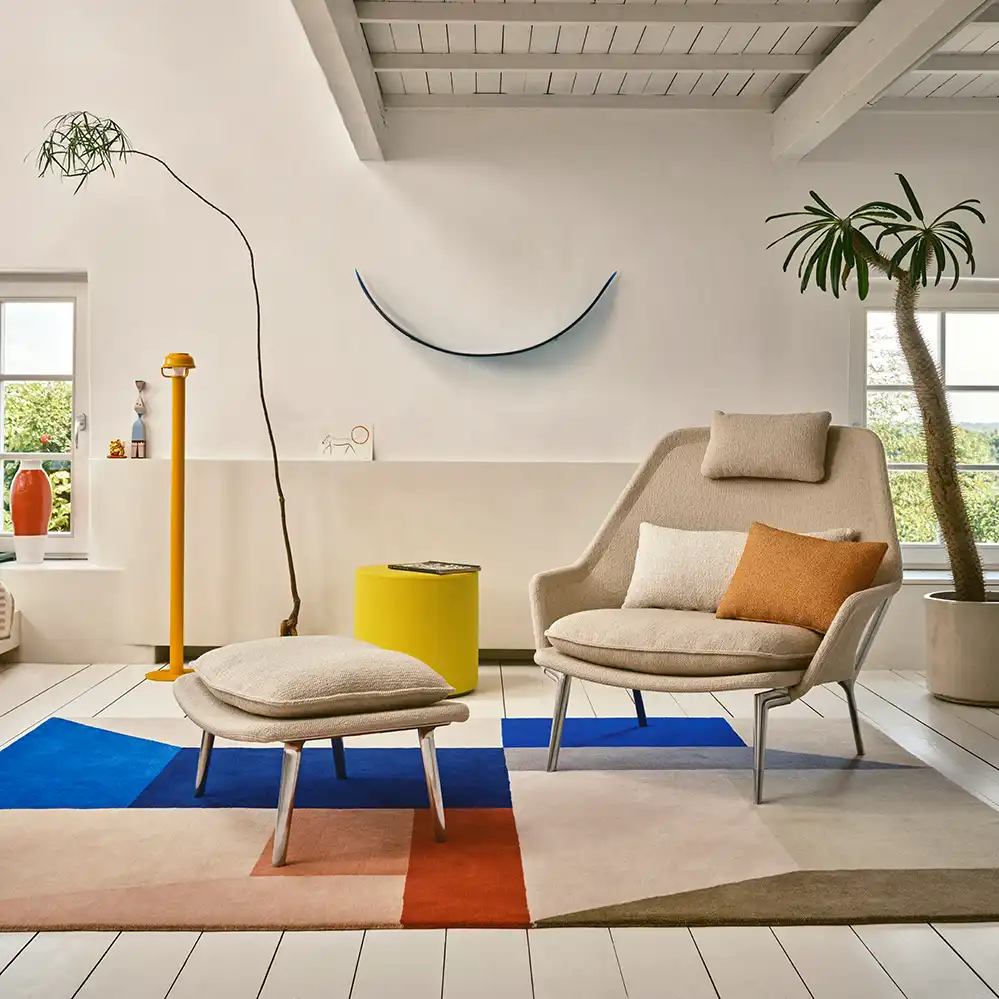 2025 legte Vitra eine neue Version des Slow Chair auf, die komplett mit Stoff verkleidet ist und auch über eine neue Polsterung verfügt. Als Stoff bieten wir diese neue Variante mit dem Vitra Bouclé-Stoff Flocca an, die Lieferung erfolgt immer mit dem passenden Nackenkissen (weitere Kissen aus der Vitra Cushion Kollektion sind auf Anfrage erhältlich.) Gerne senden wir Ihnen die Vitra Stoffmuster leihweise zu.