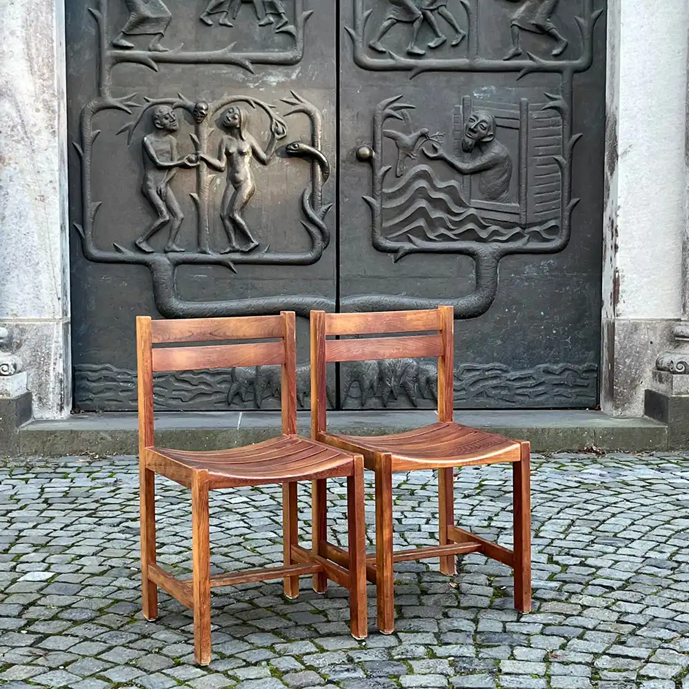 Diese beiden Lattenstühle stammen von André Sornay aus den frühen 1960er Jahren, Preis pro Stuhl.