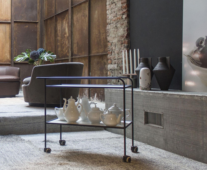 Der reduzierte Barwagen Steel Pipe Drink Trolley ist ein Entwurf von Shiro Kuramata aus dem Jahr 1968. Das Design inspirierte den japanischen Entwerfer später zu dem Sessel „Sofa with Arms”. Die Edition von Cappellini entstand Ende 2014 in enger Zusammenarbeit mit der Shiro Kuramata Foundation.