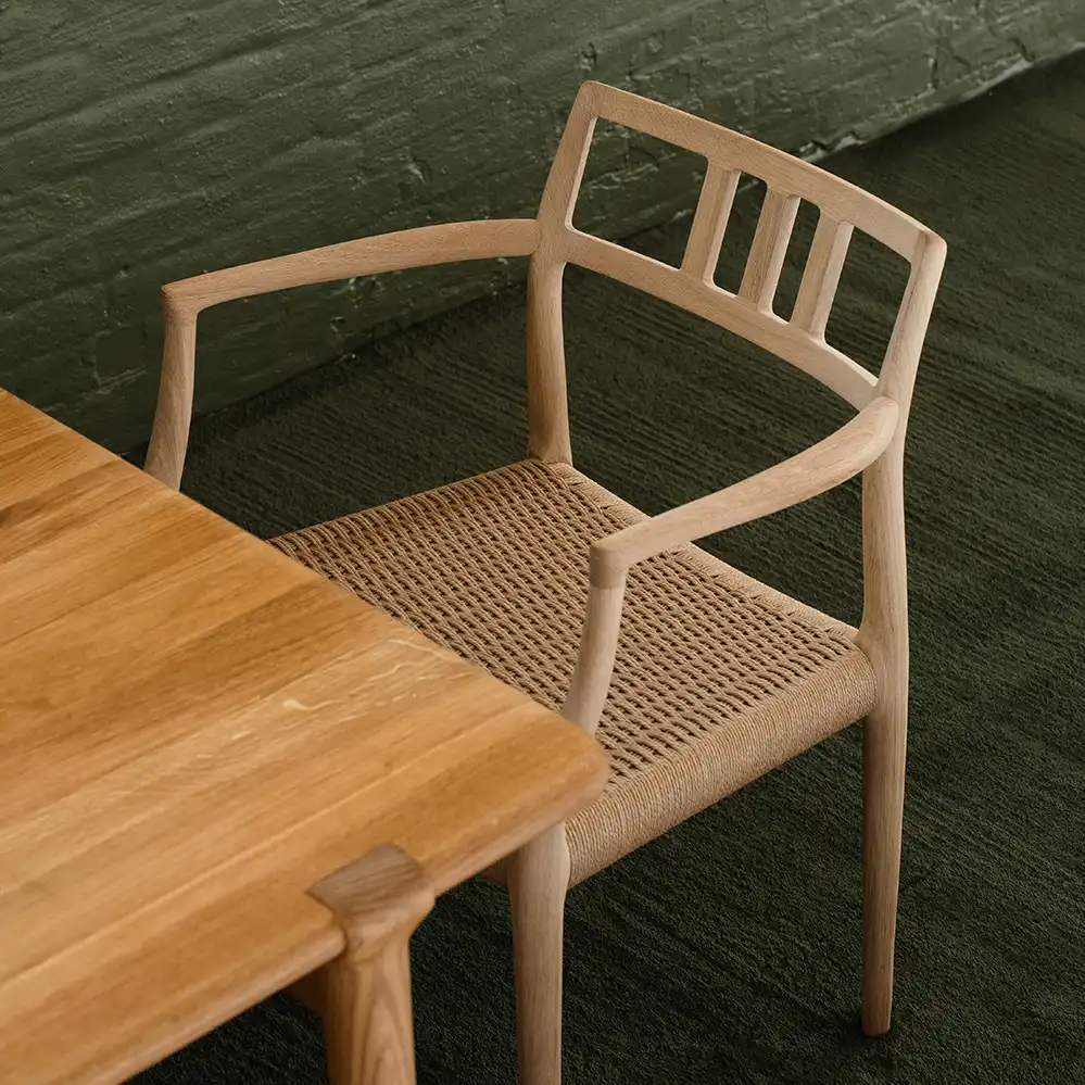 Der ausgebildete Tischler Niels Otto Møller war gleichzeitig als Designer des dänischen Mid Century Designs wie als Unternehmer erfolgreich. Noch heute befindet sich seine 1944 gegründete Möbelmanufaktur J.L. Møllers Møbelfabrik im Familienbesitz und produziert seine Entwürfe auf höchstem handwerklichen Niveau.