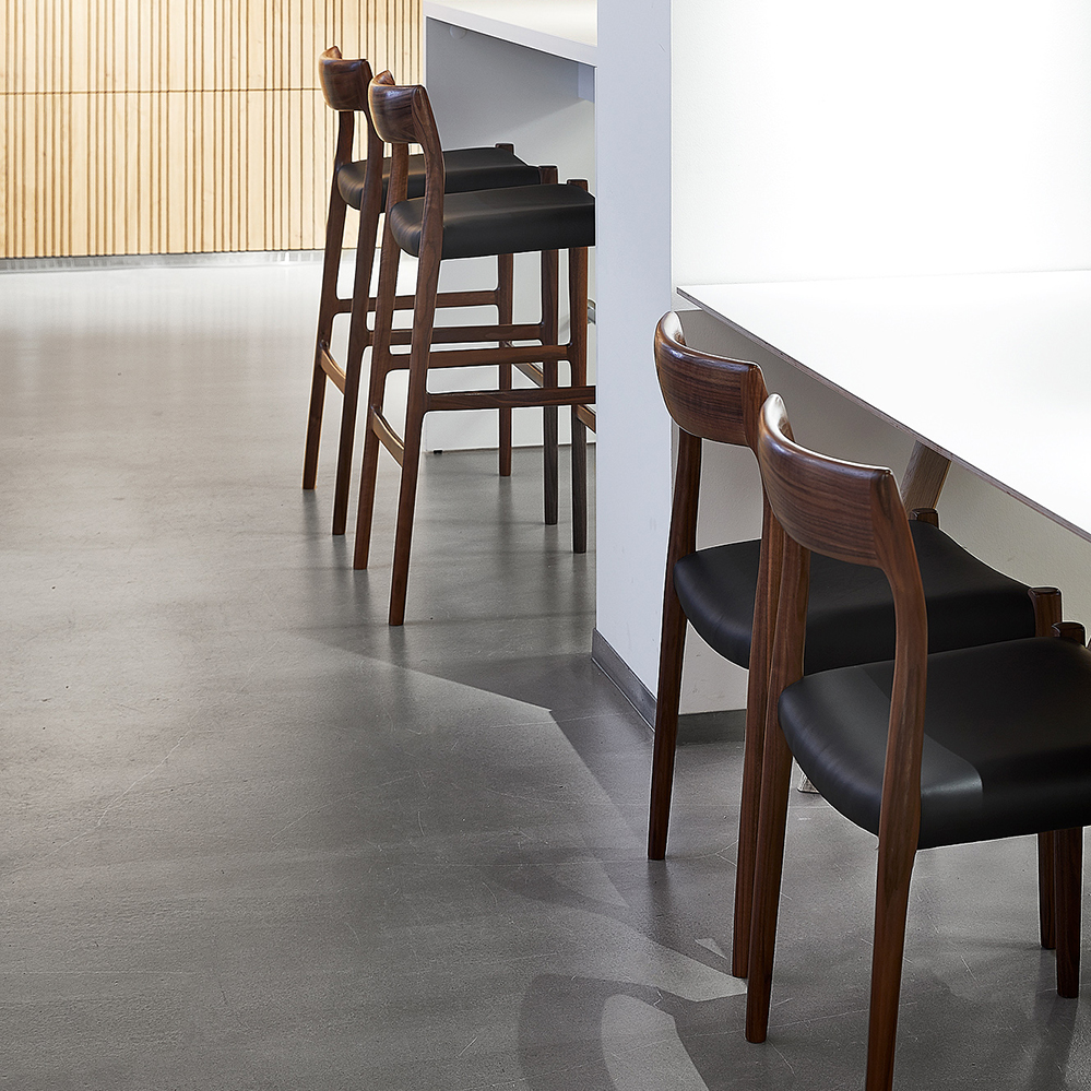Den Stuhl 77 entwickelte der dänische Designer Niels Otto Møller 1959 für seine eigene Firma J.L. Møllers Møbelfabrik, die Variante als Armlehnstuhl ist das Modell 57. Erhältlich ist der Stuhl bei Markanto als Standard wahlweise mit einer Sitzfläche aus Papiergeflecht oder mit Leder. Varianten mit einem Stoffbezug in Hallingdal von bieten wir Ihnen gerne auf Anfrage extra an!