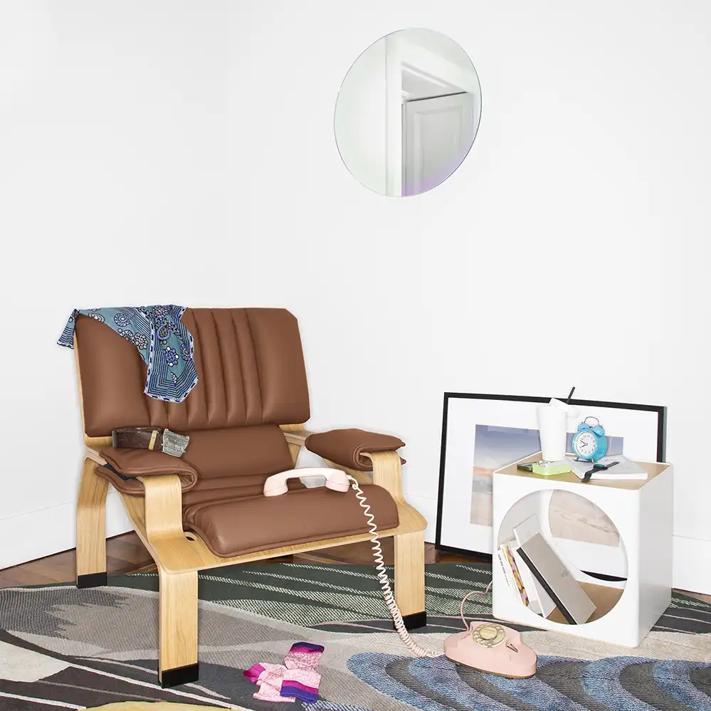 Der von Joe Colombo 1964 entwickelte Supercomfort Sessel ist das Ergebnis einer ergonomischen Untersuchung der Körperhaltung. Die Grundidee bestand darin, ein einziges Blatt eines ausgeschnitten und fugenfreien Holzfurniers zu verarbeiten. Der Fertigungsprozess wurde aber produktionsbegleitend dadurch optimiert, dass das Gestell in zwei Blätter aufgeteilt wurde. Das eine, um die Kurve aus Rückenlehne, Sitzfläche und Armlehnen zu formen, das andere, um die Beine bequem auflegen zu können. Die Lederpolsterung besteht aus einem segmentweise vernähten anatomischen Kissen mit differenzierten Abschnitten, die höchsten Komfort bieten. Ergänzt wird sie durch großzügige, um das Gestell geschlungene Polster der Armlehnen.