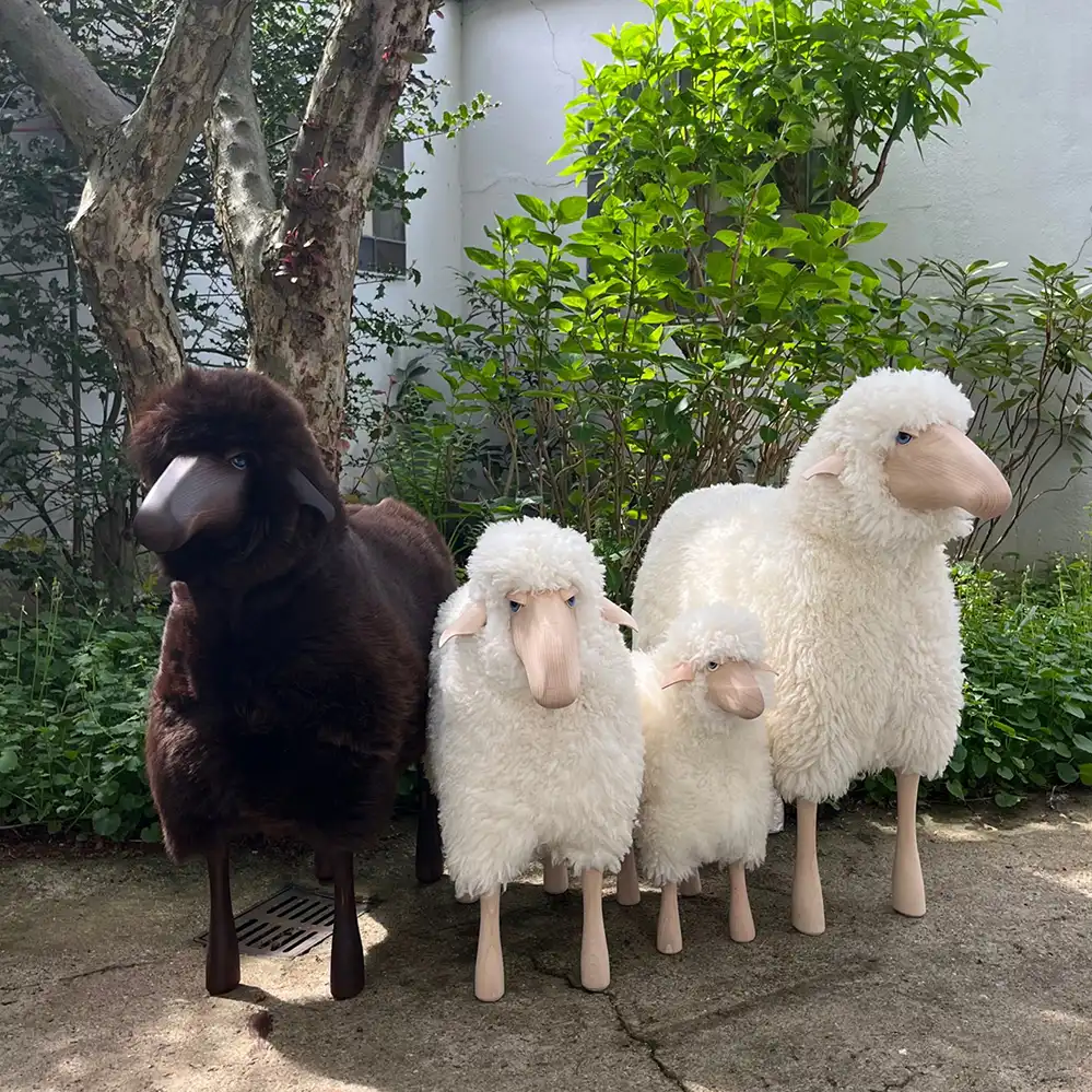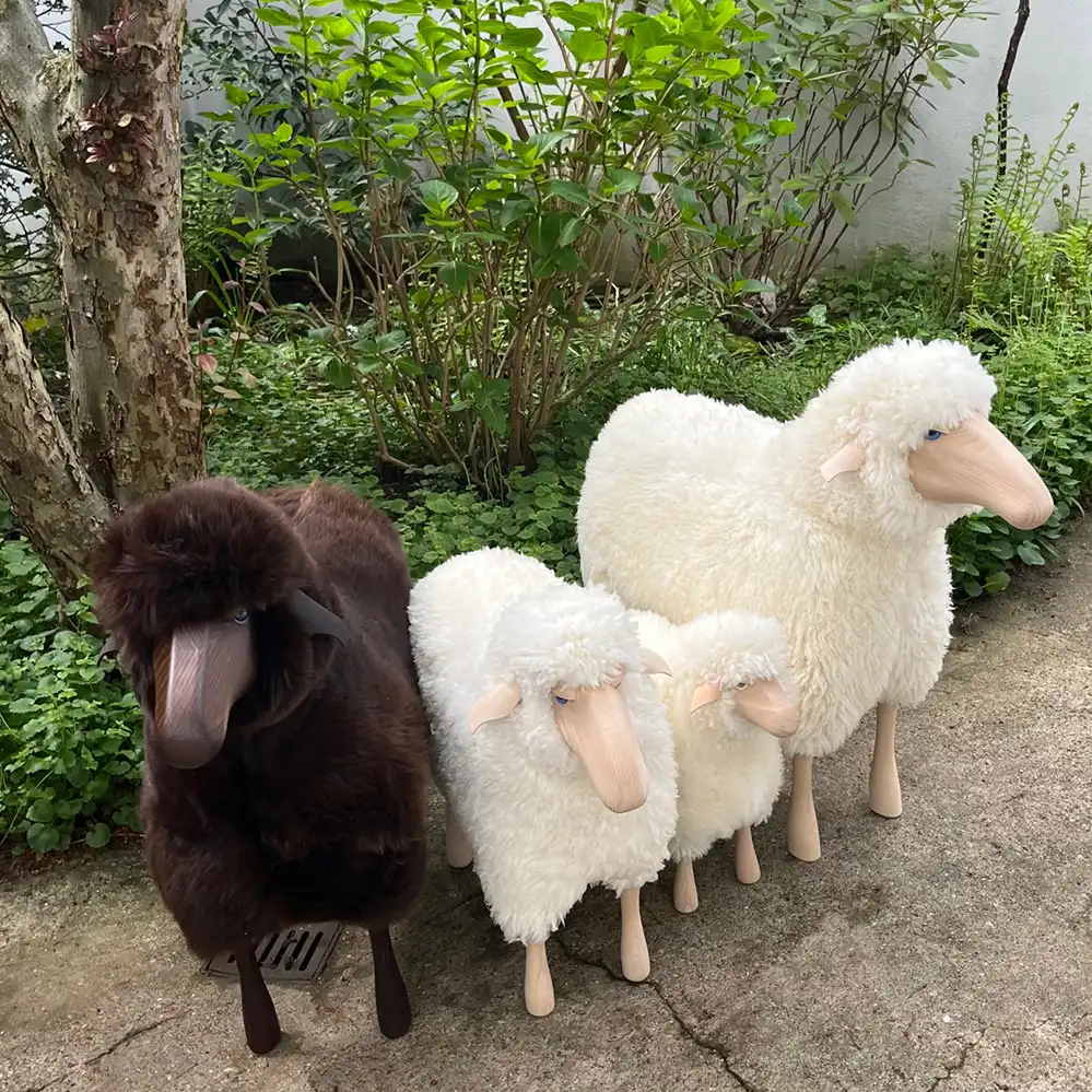 Das Schaf aus massiver Buche von Hanns-Peter Krafft ist Sitzmöbel und Dekorationsfigur zugleich. Entworfen im Jahr 1979, wird es seitdem aus massiver Buche und Schaffell vorwiegend in Handarbeit hergestellt. Markanto bietet eine Auswahl des deutschen Klassikers an, weitere Versionen gerne auf Anfrage: