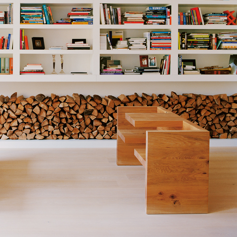 Hans de Pelsmackers skulpturale Tischbank wird von e15 in massiver Eiche, Beton und Aluminium hergestellt. Sowohl in Eiche als auch in Aluminium haben die Wände eine Stärke von 6 cm. Einstellfüße ermöglichen das Ausrichten des Möbels. Die Kombination aus Tisch und Bank vermittelt ein außergewöhnliches Sitzgefühl. Im privaten Bereich oder im öffentlichen Raum einsetzbar, erregt das Möbel durch die skulpturale Formgebung besondere Aufmerksamkeit und wurde so schon mehrfach in Museen präsentiert. Die Varianten in Aluminium und Beton sind für den Außeneinsatz geeignet.