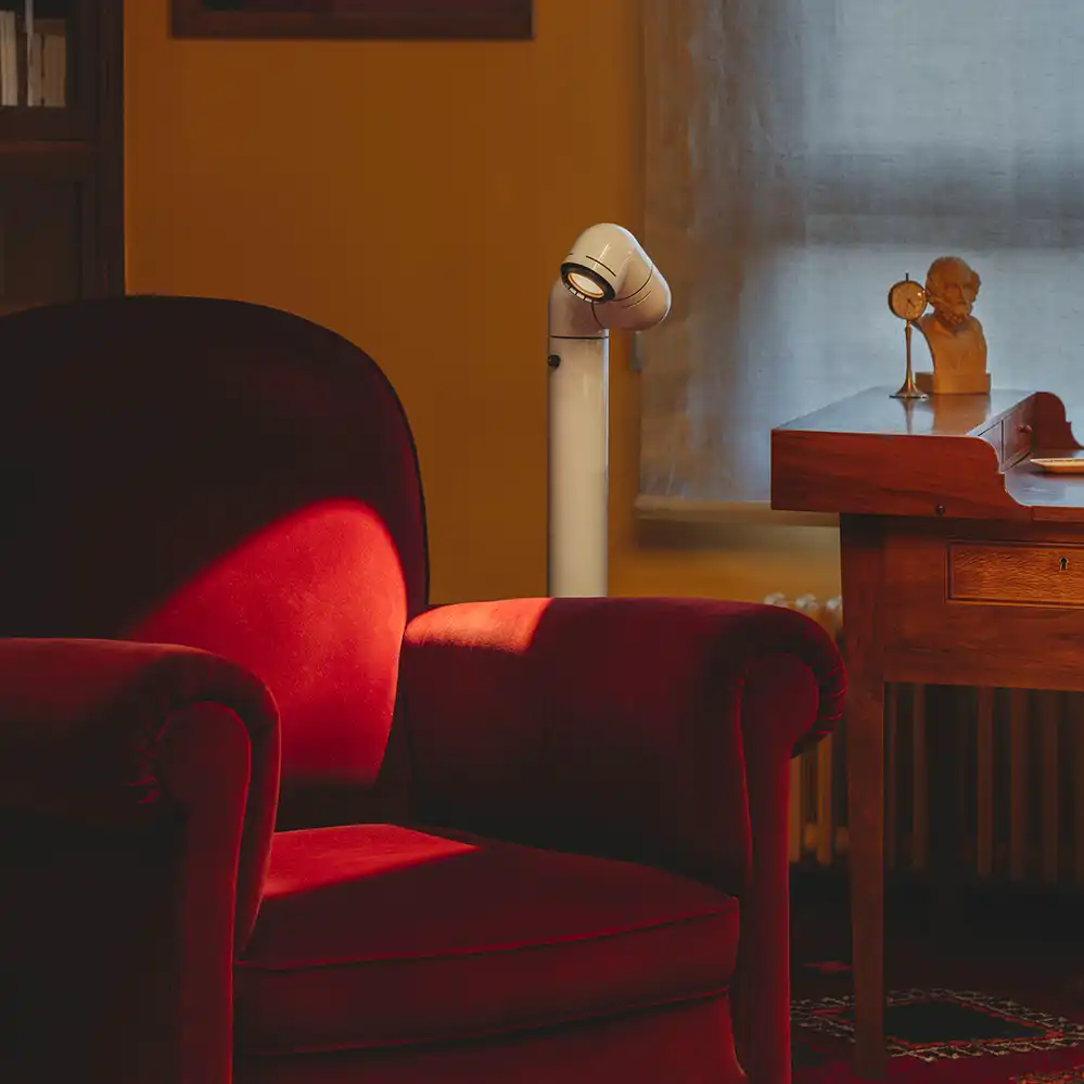 Die Tatu Alta Stehleuchte überträgt das Design der ursprünglichen Tatu Tischleuchte auf ein elegantes Stehleuchtenformat. Ursprünglich 1974 vom spanischen Industriedesigner André Ricard entworfen, orientiert sich die modulare Form an der Gestalt eines eingerollten Gürteltieres – ein Konzept, das die Tatu zu einer Pop-Art-Ikone der europäischen Designgeschichte machte. Die dreifach verstellbare Struktur ermöglicht eine präzise Ausrichtung des Lichtkegels, ideal zum Lesen oder zur atmosphärischen Akzentbeleuchtung im Wohnraum. In der aktualisierten Edition kommt moderne LED-Technologie zum Einsatz, die sowohl die Lichtintensität als auch die Fokussierung individuell anpassen lässt.
