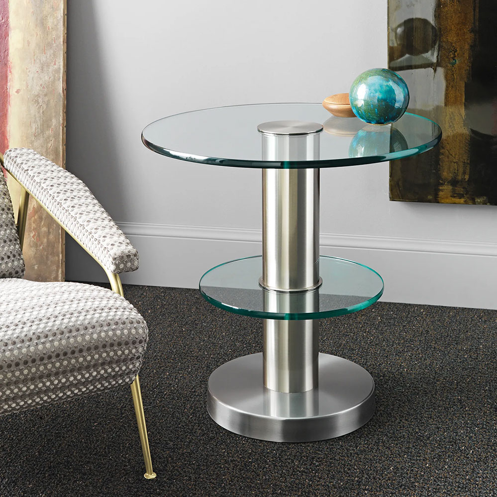 Der runde Beistelltisch Tavolino mit den beiden Glasplatten wurde von Gio Ponti im Stil des Art Déco entworfen, das Design ist - wie der Name vermuten lässt - aus dem Jahr 1932.