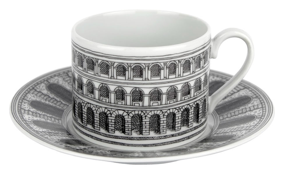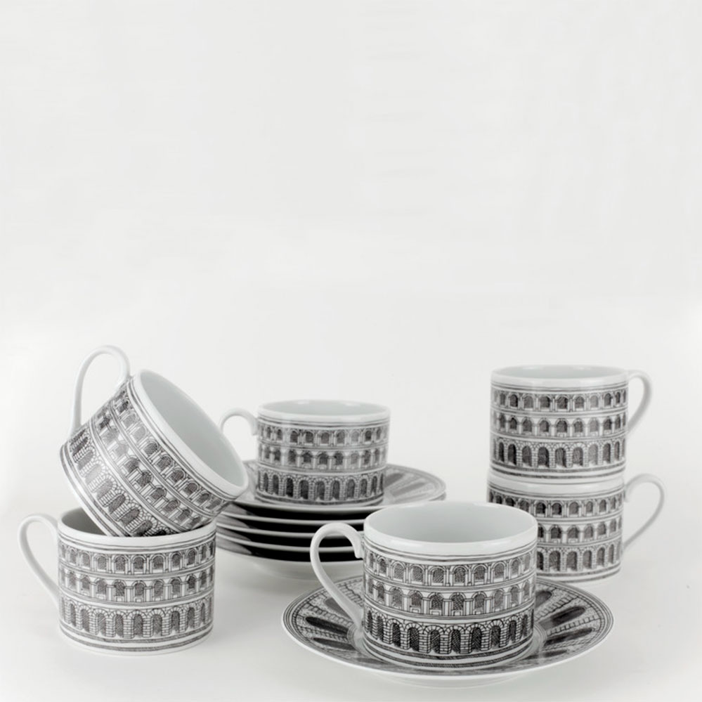 Das Motiv der Teetasse von Piero Fornasetti greift eines seiner Architekturmotive auf. Aus dem sehr umfangreichen Fornasetti-Kosmos präsentiert Markanto eine kuratierte Auswahl, viele weitere Entwürfe gerne auf Anfrage (Markanto ist Fornasetti Fachhändler).