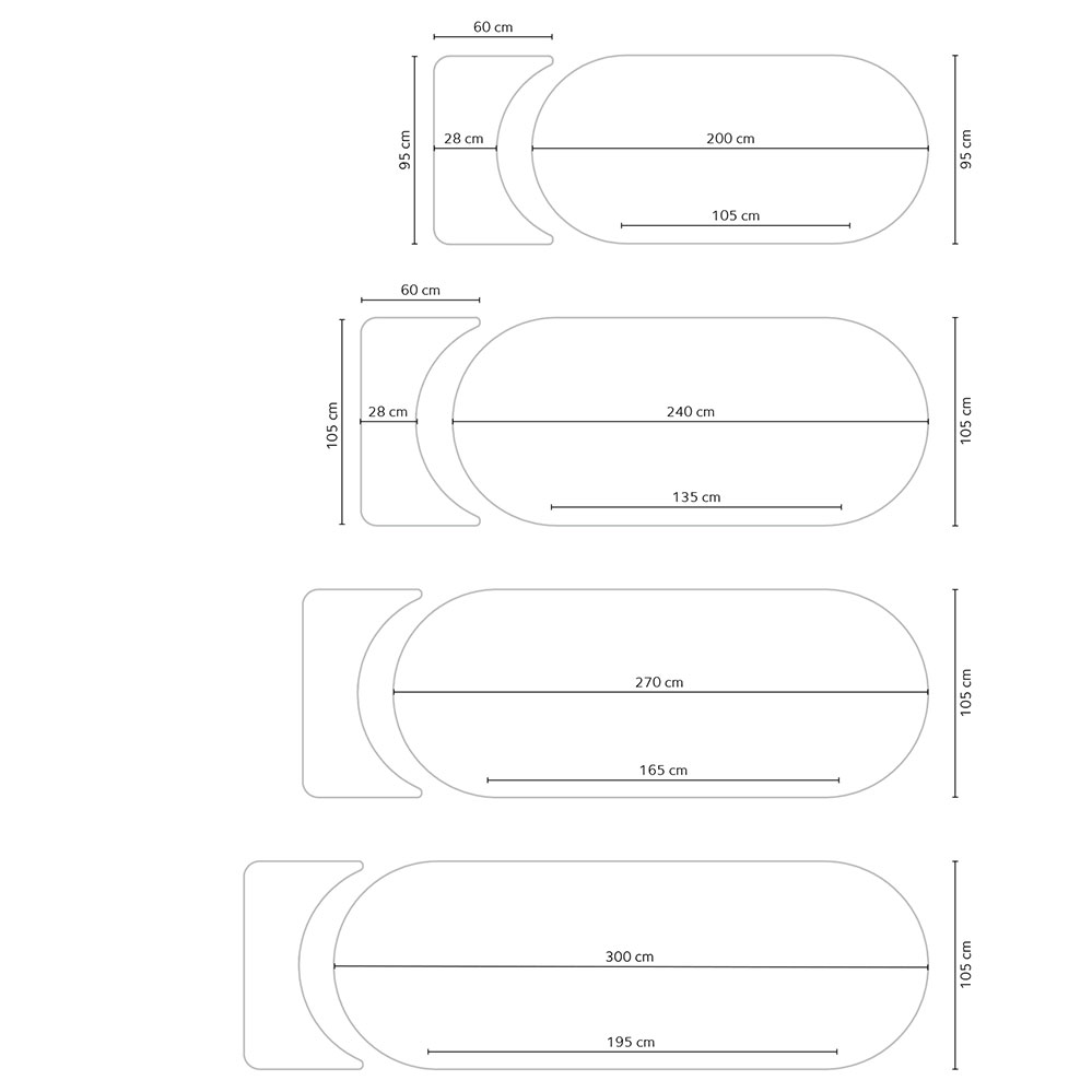 - Maße: 200 x 95 cm, 240 cm x 105 cm, Höhe 74 cm