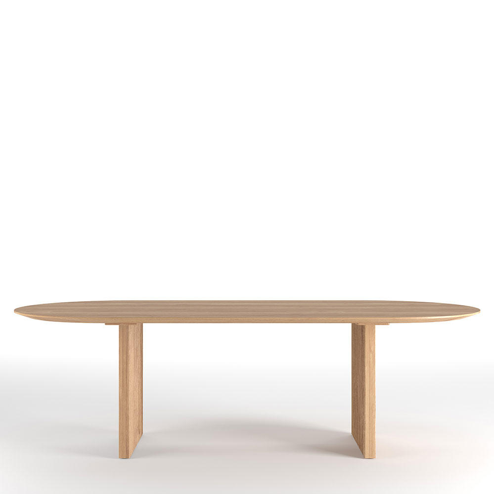 Der ovale Massivholztisch Ten Table von Christian Troels und Jacob Plejdrup aus dem Jahr 2019 ist in zahlreichen Längen bei dk3 erhältlich (200 cm, 240 cm, 270 cm, 300 cm, 340 cm, 370 cm und 400 cm). Neben der ovalen Version ist der Ten Table zuätzlich noch in einer rechteckigen Form möglich. Auch bei der Holzauswahl sind ebenso viele Varianten möglich: Eiche, wilde Eiche, dunkel gebeizte Eiche, schwarz lackierte Eiche oder Nussbaum, von denen Markanto eine Auswahl anbietet. Gefertigt wird der sogenannte Plankentisch von der dänischen Manufaktur Kristoffersen Møbelfabrik für dk3: