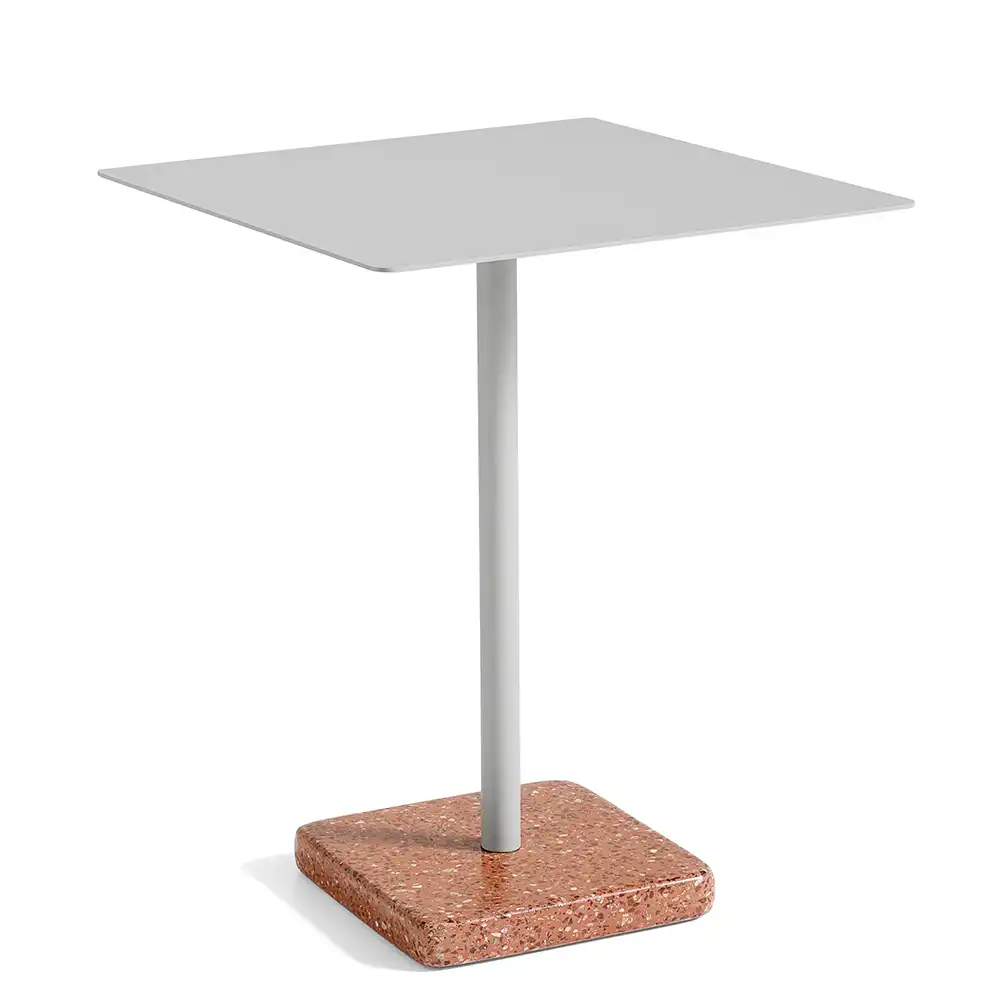 - Terazzo Table Hellgrau rechteckig: 60 x 60 cm, Höhe 74, roter Terrazzo Fuß