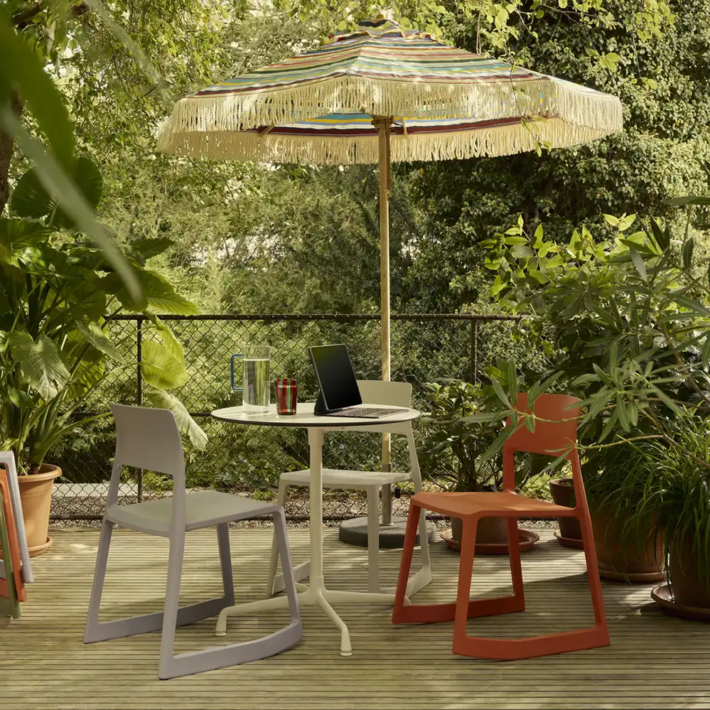 Mit dem Entwurf des Stuhls Tip Ton für Vitra definierte das britische Duo Barber Osgerby 2011 eine neue Stuhltypologie: einen Stuhl zum Kippeln. Was Generationen von Schülern immer verboten wurde, ist seitdem erlaubt. Der Name Tip Ton deutet schon die zweifache Sitzerfahrung an – aus der Normalposition lässt sich Tip Ton nach vorne kippen, wo der Stuhl um einige Grad geneigt stehen bleibt.