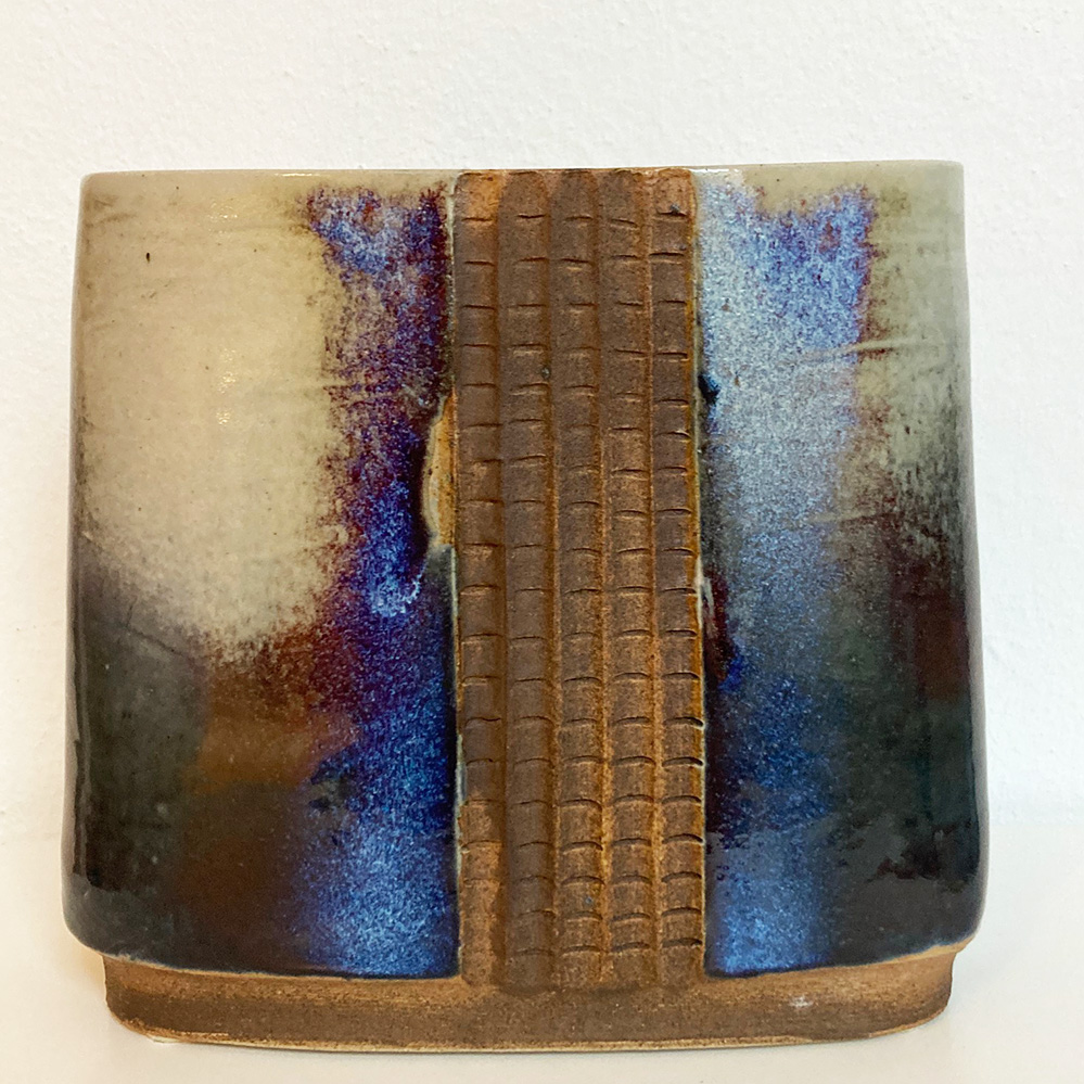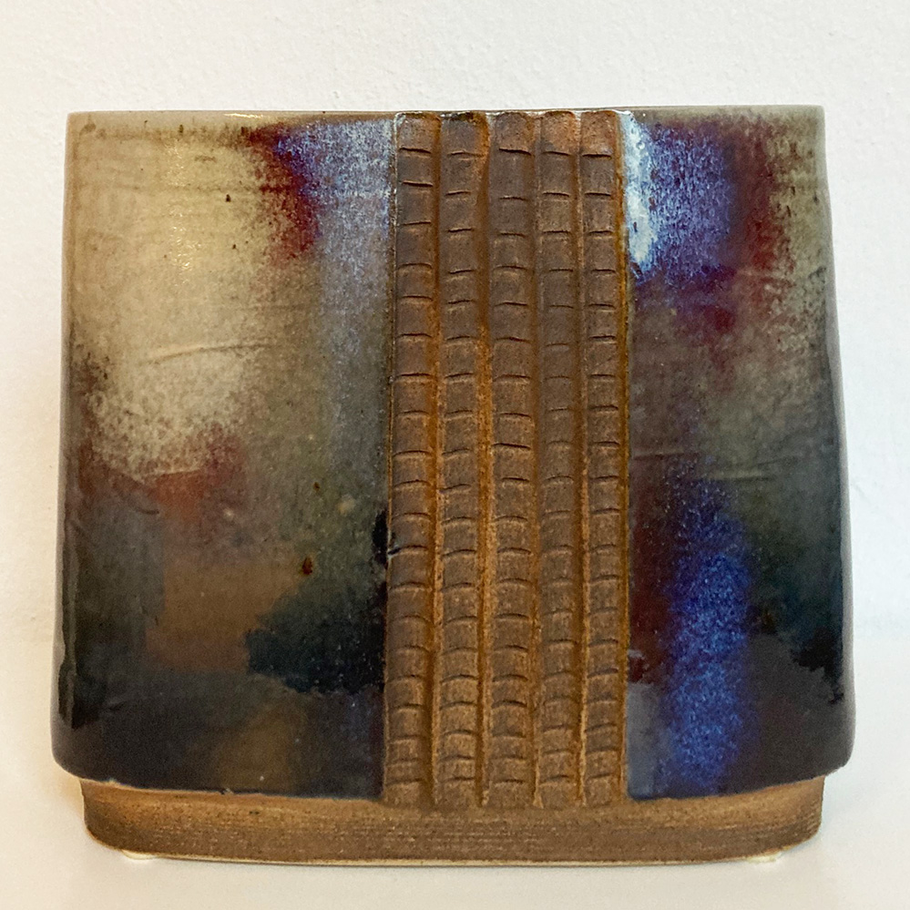 Das 24 cm hohe und recht schwere Gefäß ist ein Entwurf der Bremer Keramikerin Dorothee Colberg-Tjadens aus den 1970er oder 80er Jahren und besticht durch die Ausgestaltung und Glasur.