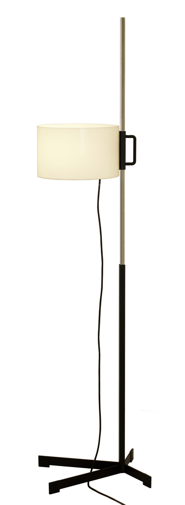 Die höhenverstellbare TMC Stehleuchte entwarf der spanische Designer Miguel Milá im Jahr 1961. Die Höhe der Leuchte wird dabei mit Hilfe eines Magneten justiert.
