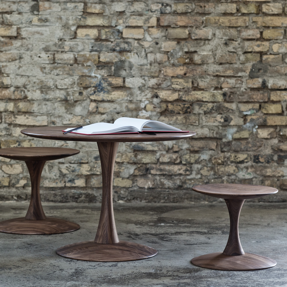 Der berühmte Trissen Hocker ND105 von Nanna Ditzel, hergestellt von Snedkergaarden in Dänemark, ist ein Entwurf aus dem Jahr 1962. Ursprünglich entwickelte Nanna Ditzel die Serie Trissen (nach dem dänischen Namen für eine Webspule) als Kindermöbel. Passend zu dem Hocker ist der Couchtisch ND112 oder der Esstisch ND109.