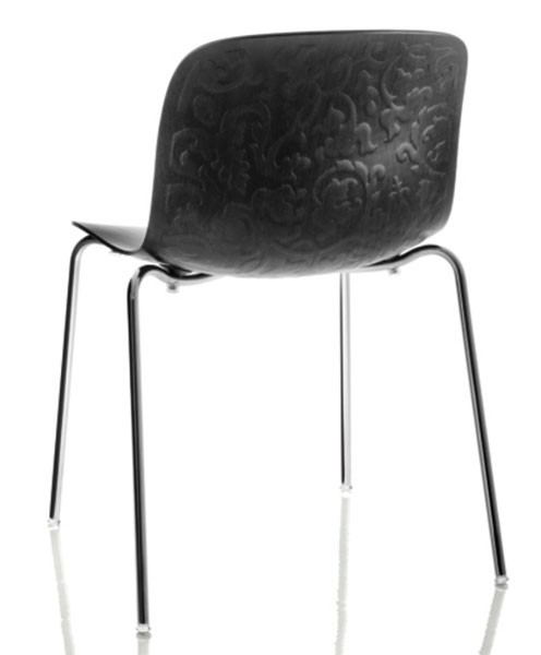 Für Magis entwarf Wanders 2010 den stapelbaren Troy Stuhl mit einer organischen Schichtholzschale. Das Besondere an der Schale ist das ornamentale Hochreliefdekor auf der Rückseite. Lieferbar bei Markanto als Standard in Buche natur oder schwarz (andere Stühle der Serie gerne auf Anfrage).