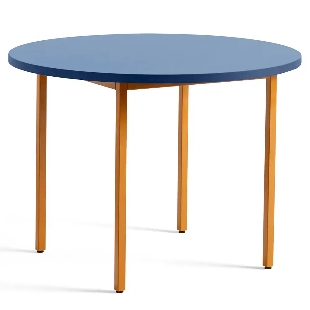 Der Two-Colour Table Round ist ein ausdrucksstarker Designentwurf des belgischen Duos Muller Van Severen für HAY, bei dem Materialkontraste und Farbkompositionen im Mittelpunkt stehen. Die runde Tischplatte aus gefärbtem Valchromat – einem robusten, FSC-zertifizierten MDF-Material mit wasserbasierter Lackierung – trifft auf ein Gestell aus pulverbeschichtetem Stahlrohr, das für Stabilität und Leichtigkeit sorgt. Erhältlich ist der Two-Colour Table bei HAY in sechs Farbkobinationen: