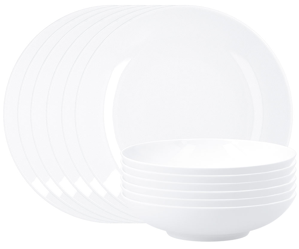 Das 12teilige UrbinoTafel-Set besteht aus 6 flachen Platztellern und 6 Suppentellern. Das Set ist Bestandteil der umfangreichen KPM Urbino Serie, die ab 1930 von der deutschen Designerin Trude Petri im Stil der neuen Sachlichkeit entworfen wurde und bis heute sehr erfolgreich ist.