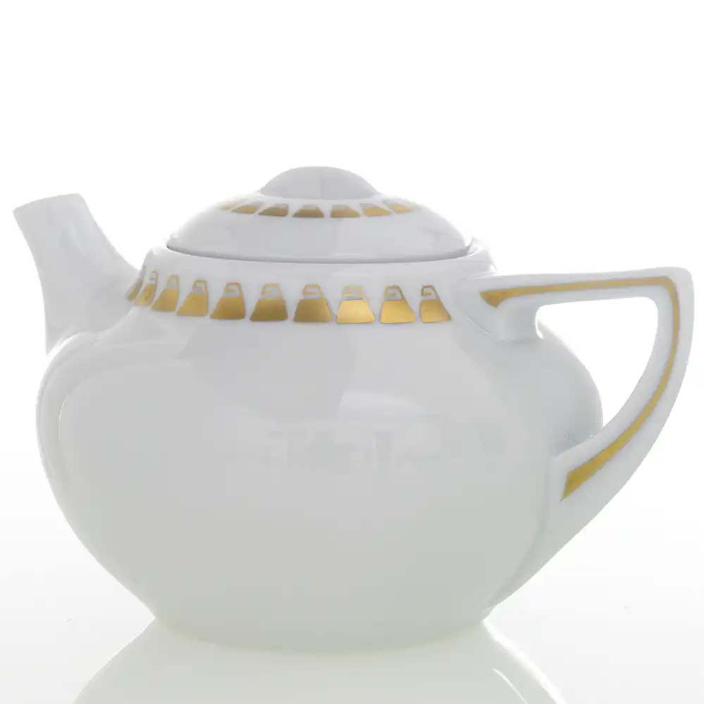 Die Teekanne von Henry van de Velde ist Bestandteil eines Entwurf aus dem Jahr 1914, wurde aber nie industriell produziert. Denn bedingt durch den Ausbruch des Ersten Weltkrieges wurde damals von der Firma Burgauer Porzellanmanufaktur nur ein Musterservice hergestellt, welches heute im Besitz des Stadtmuseums von Jena ist. Henry van de Velde war zu der Zeit Direktor an der Großherzoglichen Kunstgewerbeschule in Weimar, woraus später das Bauhaus entstand.