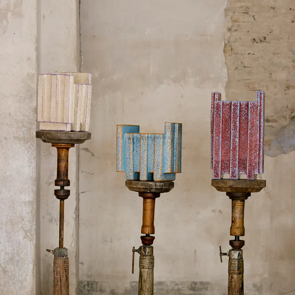 Die hohen Turmvasen URQ00031 und URQ00032 gehören zu der Keramikkollektion, die Patricia Urqiola entworfen und das erste mal auf der Design Week in Mailand 2024 ausgestellt wurden sind. Die Serie besteht aus Mikro-Architekturen, die durch ihren unterschiedlichen Formen und Oberflächen an die typischen Konsturktionsstrukturen architektonischer Projekte erinnern sollen. Das Design der Vasen verbindet skulpturale und texturale Elemente, die durch ihre unterschiedlichen Farben und Räume Spannungen erzeugen. Die Vase gibt es in zwei unterschiedlichen Ausführungen: