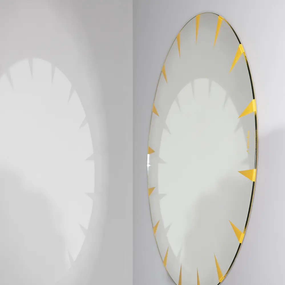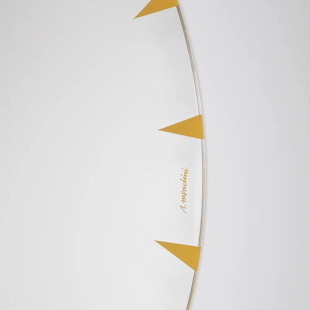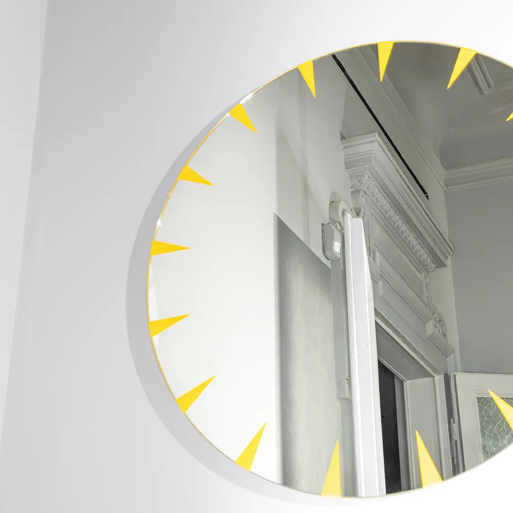 1987 entwarf Alessandro Mendini die Velasca Spiegel als runde oder rechteckige Version. Bei beiden Spiegeln visualisieren farbige Dreiecke am Rand den Betrachter in das Zentrum. 2026 wurden die Spiegel von B-Line neu aufgelegt.