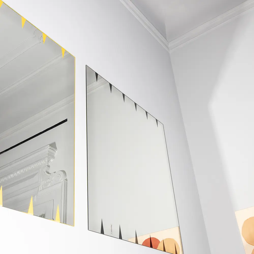 1987 entwarf Alessandro Mendini die Velasca Spiegel als rechteckige und runde Version. Bei beiden Spiegeln visualisieren farbige Dreiecke am Rand den Betrachter in das Zentrum. 2026 wurden die Spiegel von B-Line neu aufgelegt.