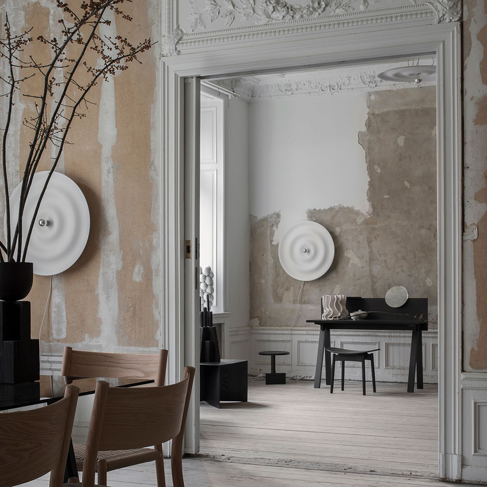 Die wellenförmige w171 Alma Leuchte ist bei Wästberg wahlweise als Pendelleuchte, Deckenleuchte oder Wandleuchte verfügbar, der Entwurf aus dem Jahr 2017 stammt von dem schwedischen Studio Tham & Videgård. Lieferbar in Aluminium, hellgrau oder weiß pulverbeschichtet.