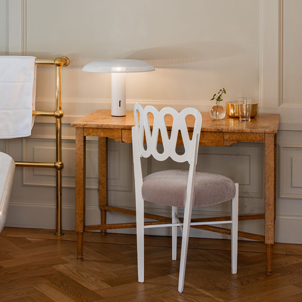 Die Wästberg Pilzleuchte w203 Ilumina von von llse Crawford ist eine Neuinterpretation der klassischen Bibliotheksleuchte. In ihr verschmelzen innovative Lichttechnologie und die Liebe zu Materialien. Das safte Licht kann durch einen Schiebe-Potentiometer geregelt werden.