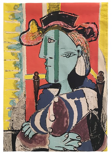 Der Jules Pansu Wandteppich basiert auf dem berühmten Picasso Werk ”Femme aux bras Croisés” aus dem Jahr 1937.