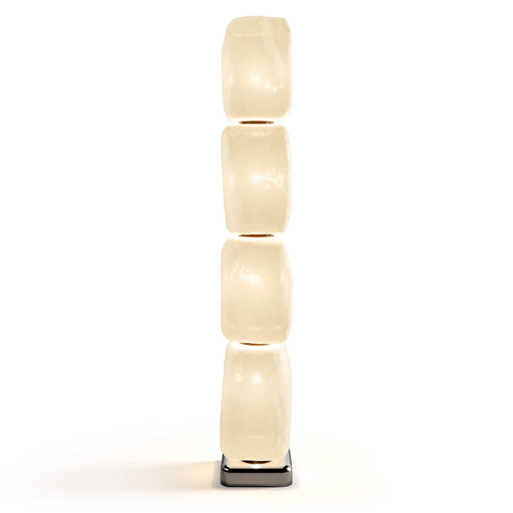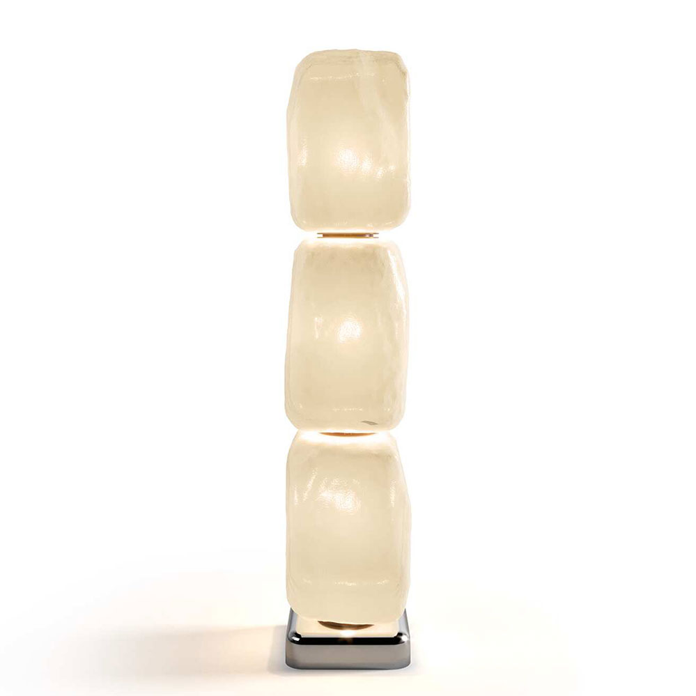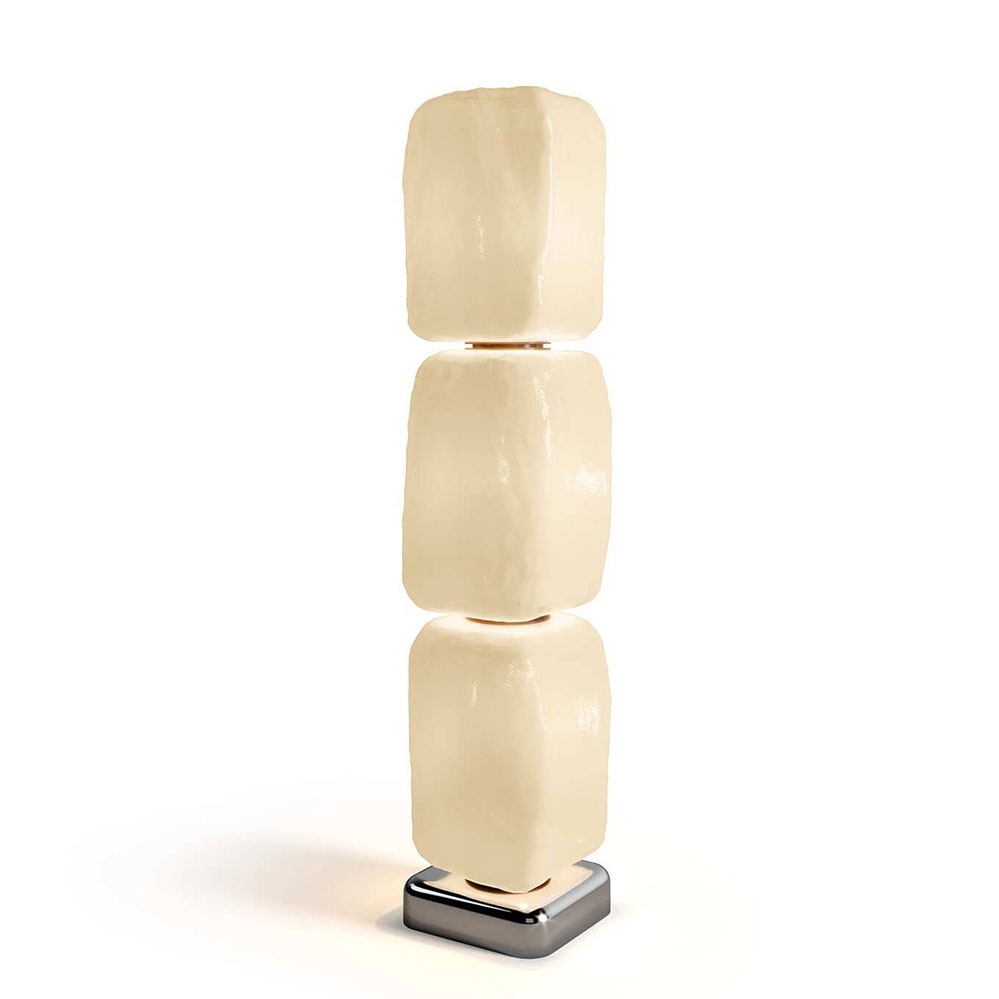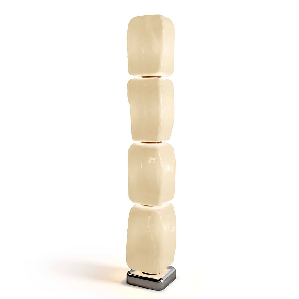 Die Cassina Stehleuchte Wax, Stone, Light ist in drei verschiedenen Größen erhältlich und zeichnet sich durch ihre skulpturale Formgebung aus. Die gestapelten Muranoglasblöcke erinnern an Totempfähle und verleihen der Leuchte eine skulpturale Ästhetik. Der Name der Serie reflektiert den aufwendigen Entstehungsprozess: Die Muranoglasblöcke werden von Glasbläsern in gusseiserne Formen geblasen und behalten dabei ihre handgefertigten, aus Wachs modellierten Unregelmäßigkeiten bei. Dadurch wird jede Leuchte zu einem einzigartigen Kunstwerk.