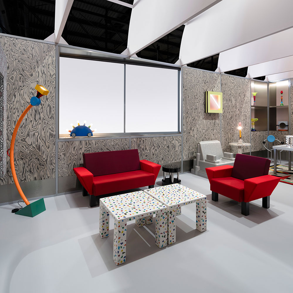Ursprünglich für Knoll International entwarf Ettore Sottsass 1983 den kubigen Westside Sessel und den gleichnamige Sofa. Inspiriert wurde er dazu von Wiener Biedermeier-Möbeln, die sich durch weiche Sitzflächen mit einfachen Formen und minimalistischen Verzierungen auszeichnen. Seit 2025 ist die Kollektion nun bei Memphis zuhause, die Sitzmöbel sind ist auf Anfrage auch in anderen Farbkombinationen erhältlich.