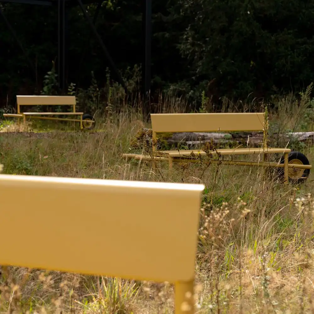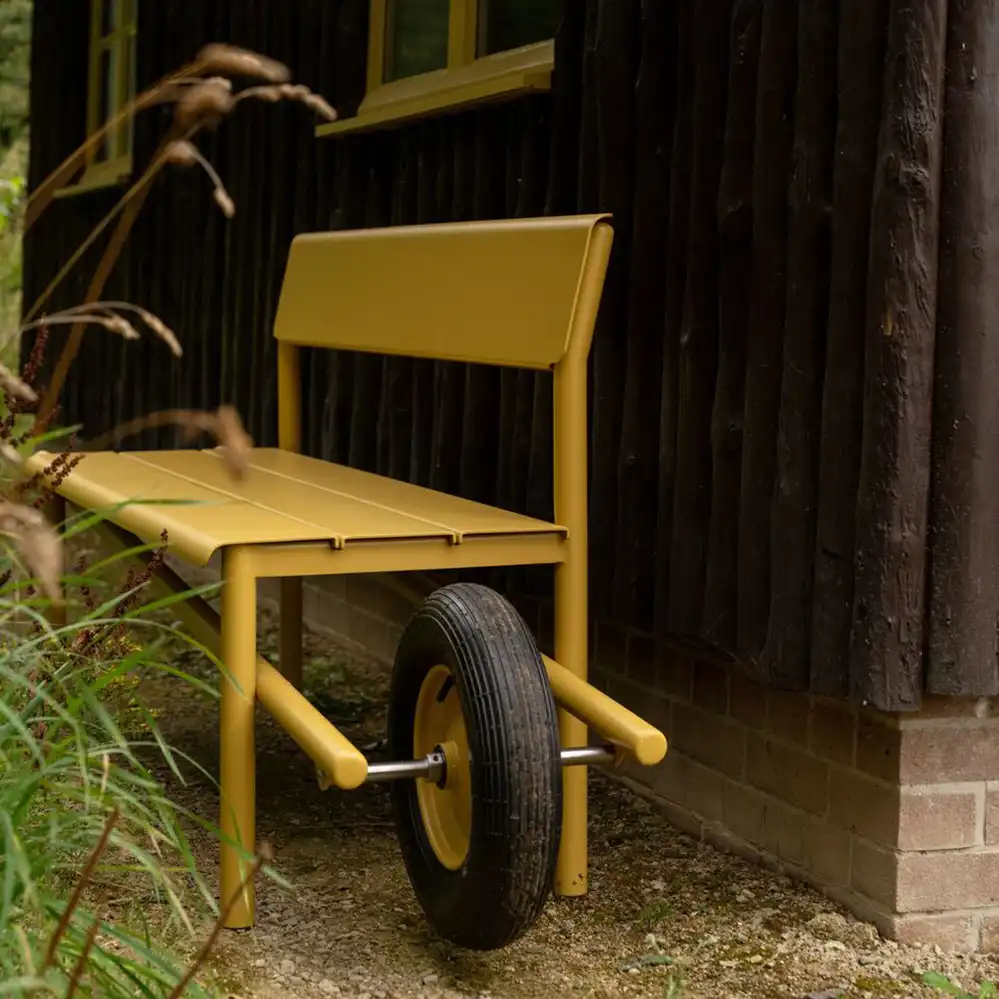 Die Wheelbench Kröller‑Müller Edition interpretiert Rogier Martens’ ikonische Wheelbench aus Eichenholz in einer zeitgenössischen Aluminium‑Ausführung, entwickelt in Zusammenarbeit mit dem Kröller‑Müller Museum. Das Zusammenspiel von Bank und Schubkarrenrad schafft ein bewegliches Objekt, das zur aktiven Interaktion mit dem Außenraum einlädt – ob in der Sonne, im Schatten oder an einem geschützten Platz. Die Edition verbindet funktionale Mobilität mit musealer Gestaltung und bietet Platz für zwei bis drei Personen. Das widerstandsfähige Aluminium macht die Bank ganzjährig wetterfest und zugleich langlebiger als das klassische Holzmodell.