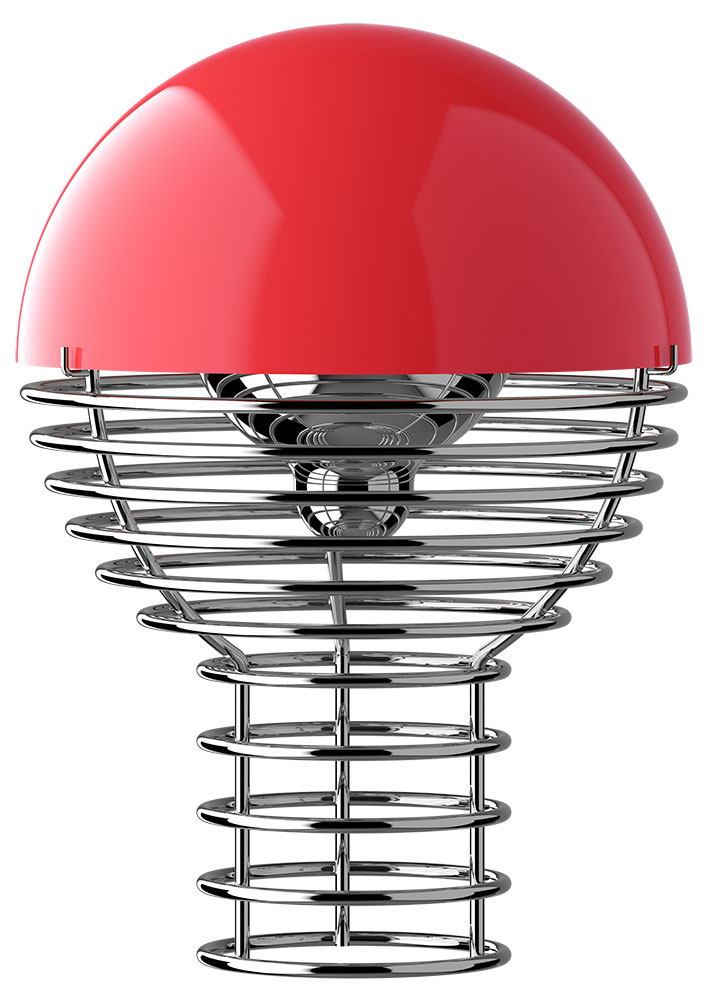 2025 stellte Verpan in Kopenhagen eine neue Version der Wire Lamp als Portable LED-Version vor. Die Tischleuchte ist ein Entwurf von Verner Panton aus dem Jahr 1972 und besticht durch das Konstruktionsprinzip. Der Lampenfuß besteht aus verchromten Metalldraht, ein Material, das Panton immer wieder gerne verwendete, wie bei den Entwürfen seines Drahtregal oder den Sitzmöbeln für Fritz Hansen.