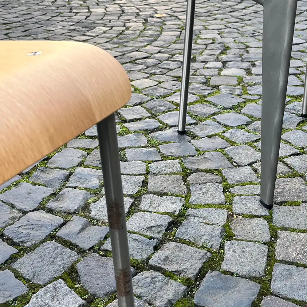 Der Standard Chair von Jean Prouvé mit seinen konstruktiv verstärkten Hinterbeinen zählt zu den wichtigsten Designklassikern der Möbelgeschichte. Entworfen wurde der Stuhl bereits in den 1930er Jahren, die heute von Vitra hergestellte Edition basiert auf Prouves später überarbeitetem Entwurf aus dem Jahr 1950.