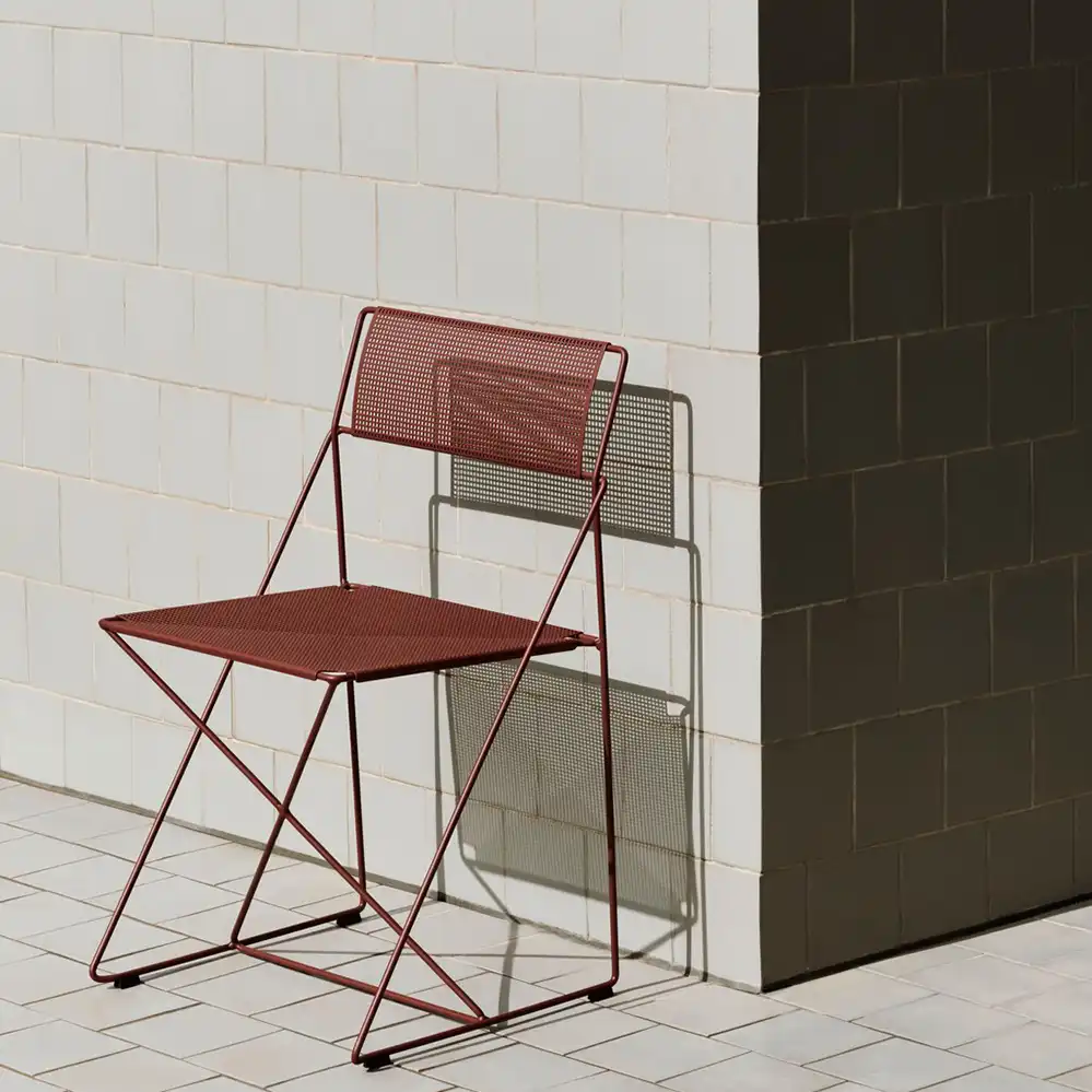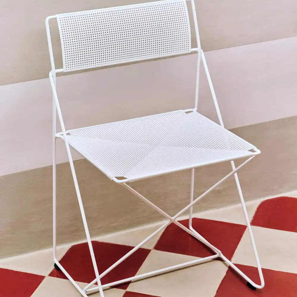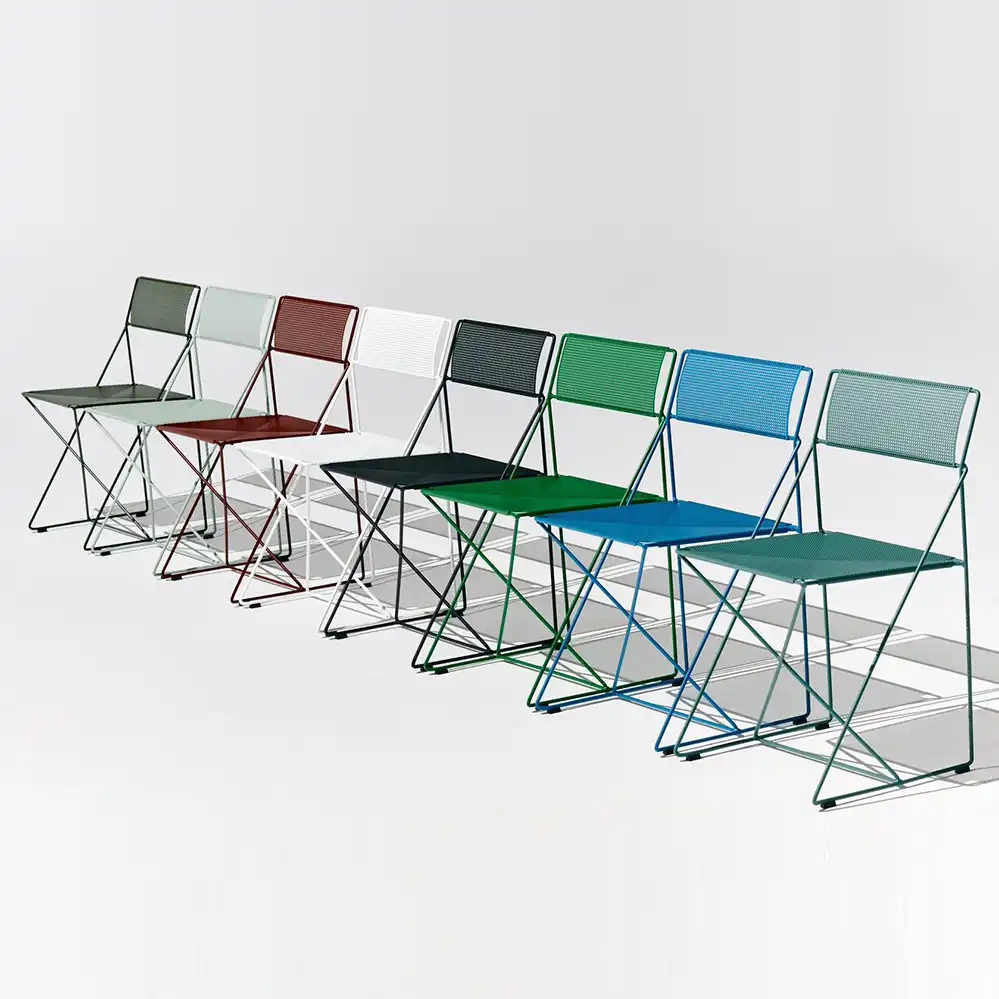 Der X-Line Chair ist ein Designklassiker aus den späten 1970er-Jahren, entworfen von Niels Jørgen Haugesen und heute Teil der HAY-Kollektion. Die filigrane Konstruktion aus dünnem Metalldraht und die präzise Verarbeitung verleihen dem Stuhl eine leichte, industrielle Anmutung. Die charakteristische X-Struktur sorgt für Stabilität und Flexibilität, während die klare Formensprache zeitlose Eleganz ausstrahlt. Dank seiner robusten Materialien und Stapelbarkeit ist der X-Line Chair vielseitig einsetzbar – sowohl im privaten Wohnbereich als auch in öffentlichen und gewerblichen Räumen, innen wie außen.
