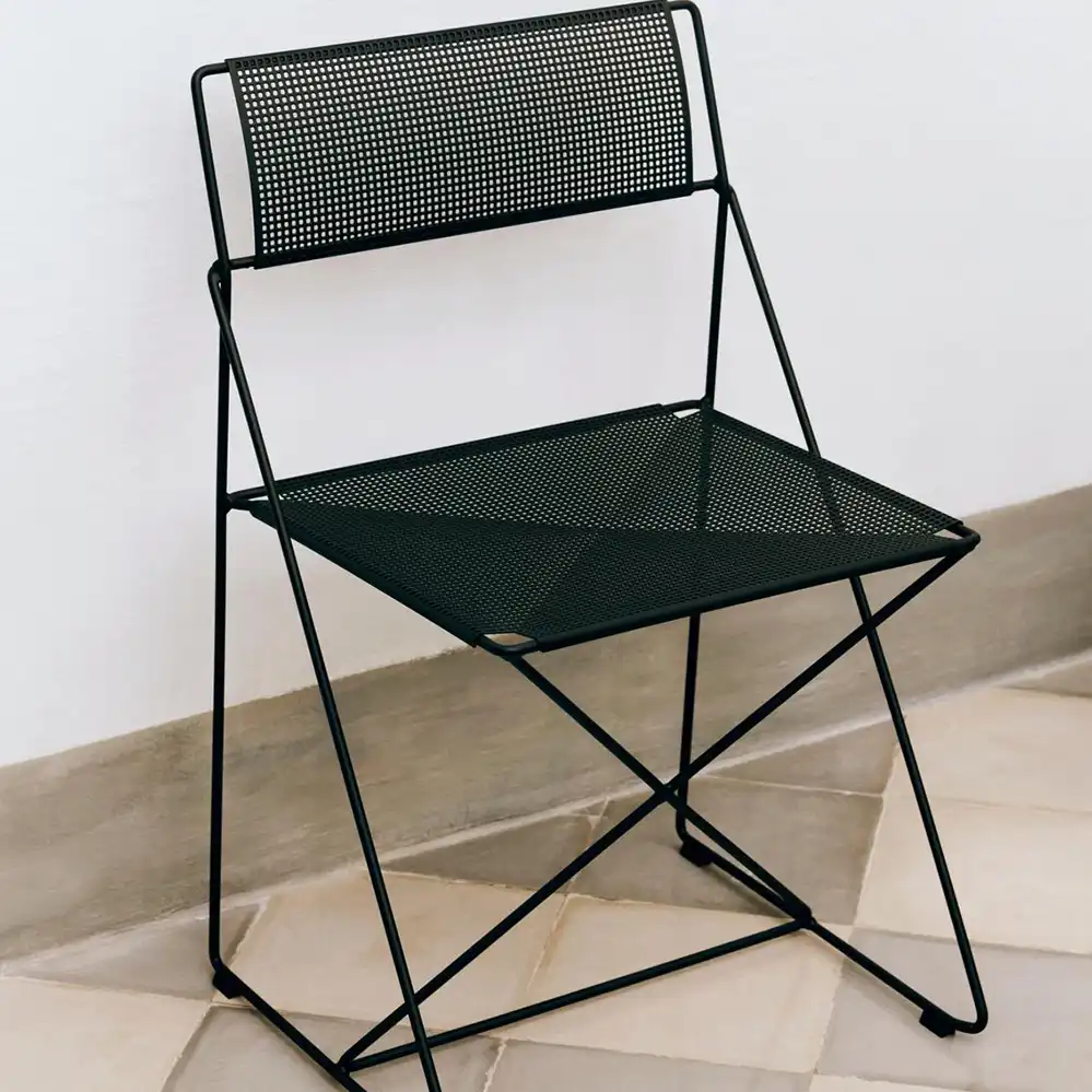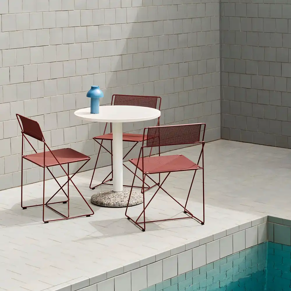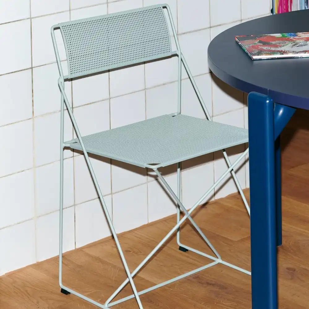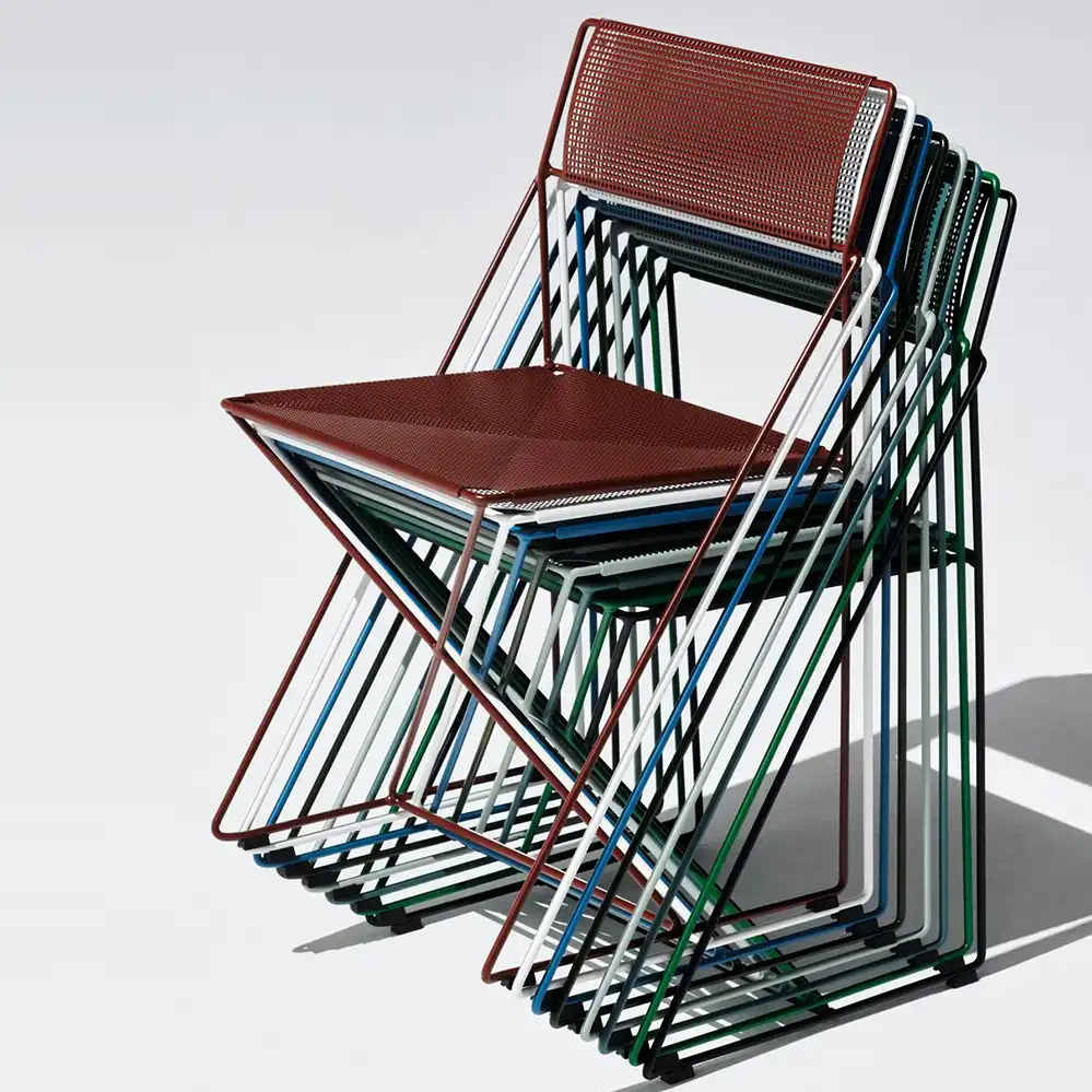 Der X-Line Chair ist ein Designklassiker aus den späten 1970er-Jahren, entworfen von Niels Jørgen Haugesen und heute Teil der HAY-Kollektion. Die filigrane Konstruktion aus dünnem Metalldraht und die präzise Verarbeitung verleihen dem Stuhl eine leichte, industrielle Anmutung. Die charakteristische X-Struktur sorgt für Stabilität und Flexibilität, während die klare Formensprache zeitlose Eleganz ausstrahlt. Dank seiner robusten Materialien und Stapelbarkeit ist der X-Line Chair vielseitig einsetzbar – sowohl im privaten Wohnbereich als auch in öffentlichen und gewerblichen Räumen, innen wie außen.