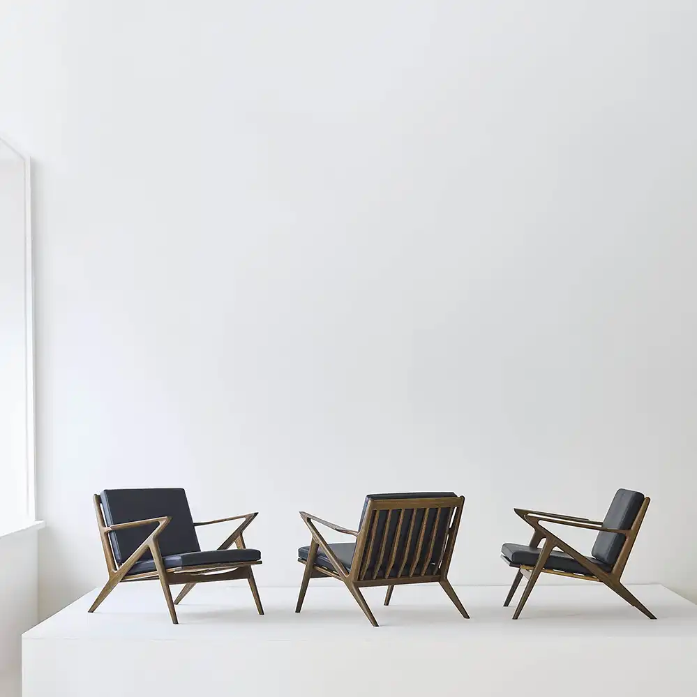 Der skulpurale Z Easy Chair ist ein Design des dänischen Möbeldesigners Poul Thorsbjerg Jensen aus dem Jahr 1957, der Mid Century Klassiker überzeugt durch seine ikonische Silhouette. und wurde früher von Christian Jensen’s Møbelsnedkeri hergestellt. SEit 2025 ist der Lounge Sessel bei DK3 im Programm.